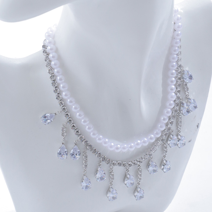【アクセサリー:ネックレス】ストーンパールネックレス/ビジュー/シルバー【1カラー】[OF02] [NE305-241015-1]