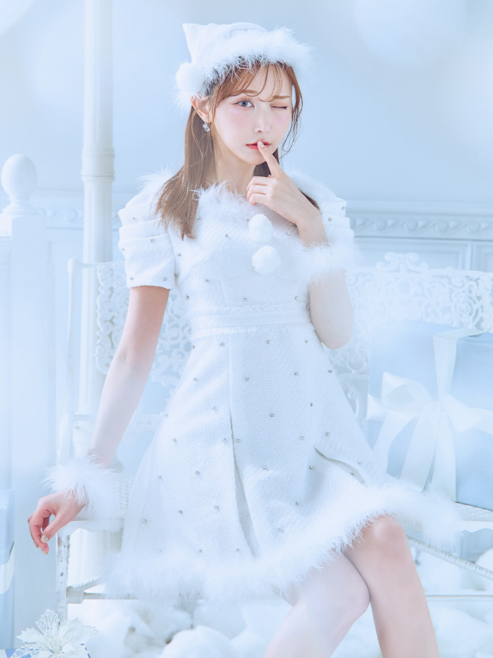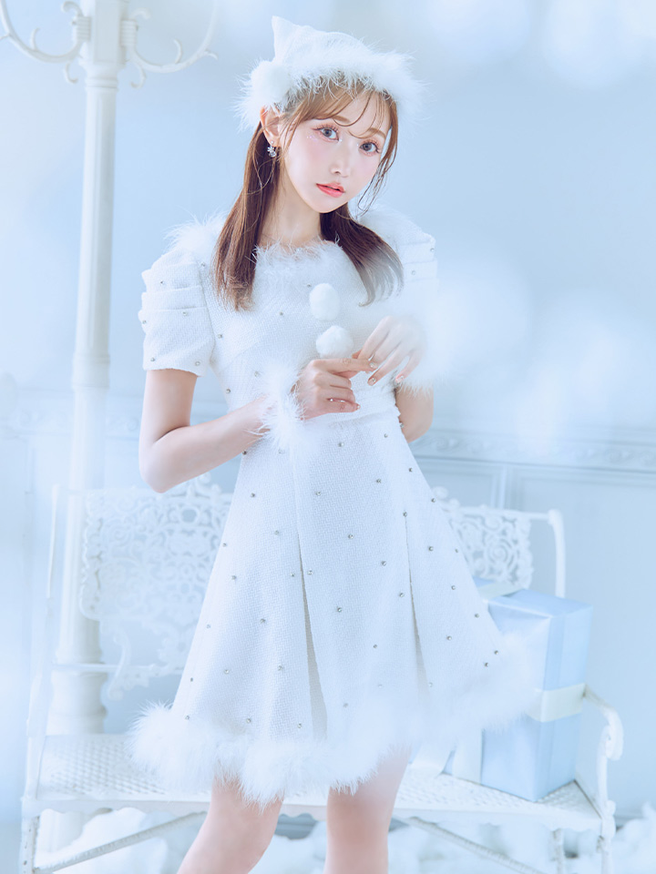 - > 【即日発送!】【サンタコス 4点セット】【XS-XLサイズ/3カラー】ツイードビジュープリーツスカートサンタコスプレ[OF04]