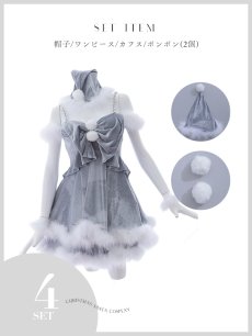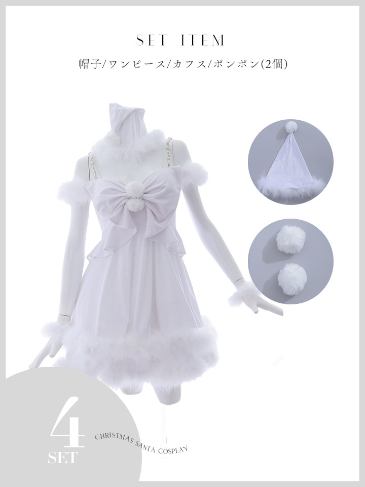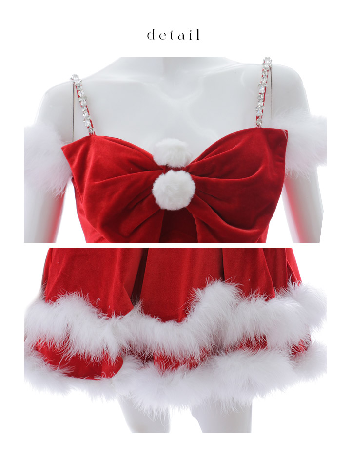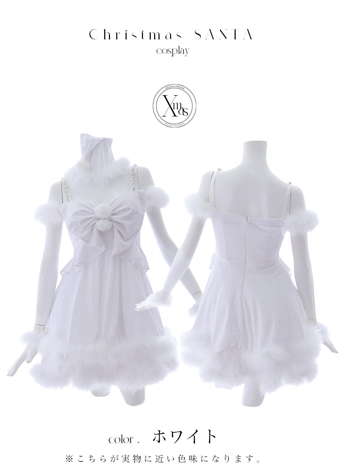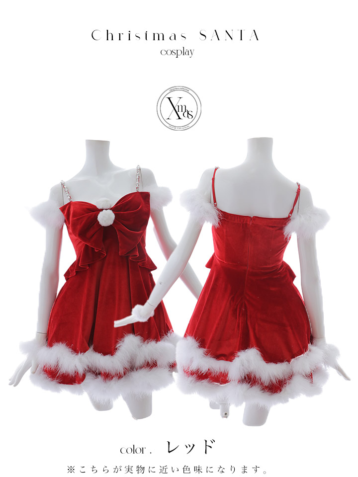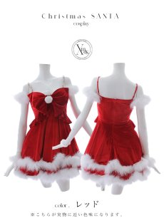 - > 【即日発送!】【サンタコス 4点セット】【XS-Lサイズ/2カラー】フロントビッグリボンオフショルフレアサンタ[OF04]