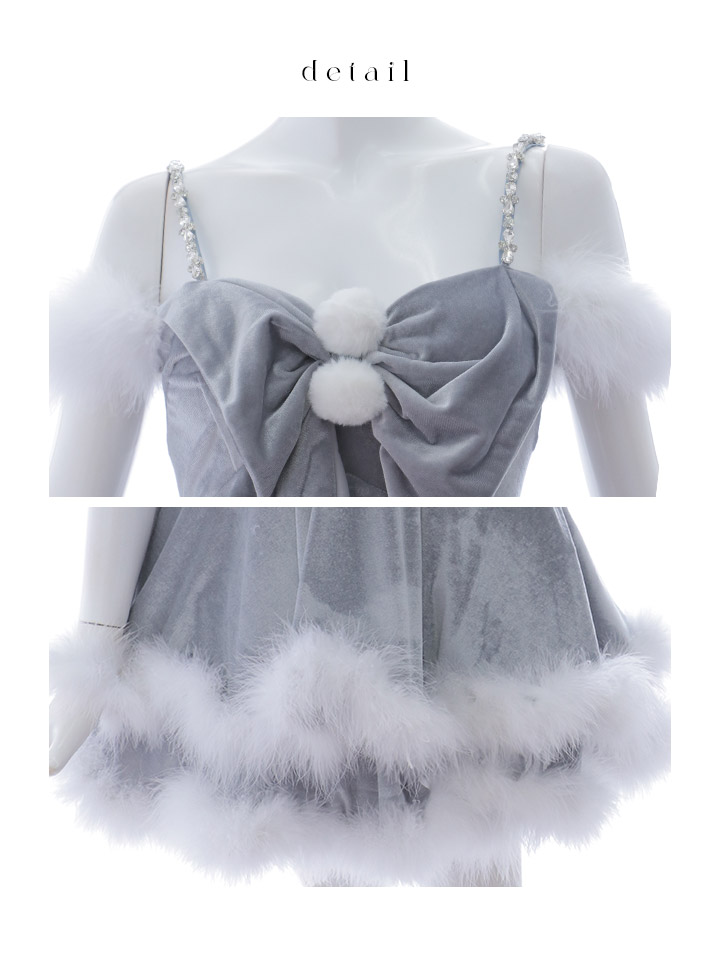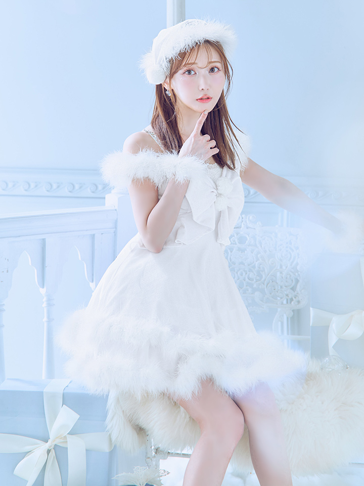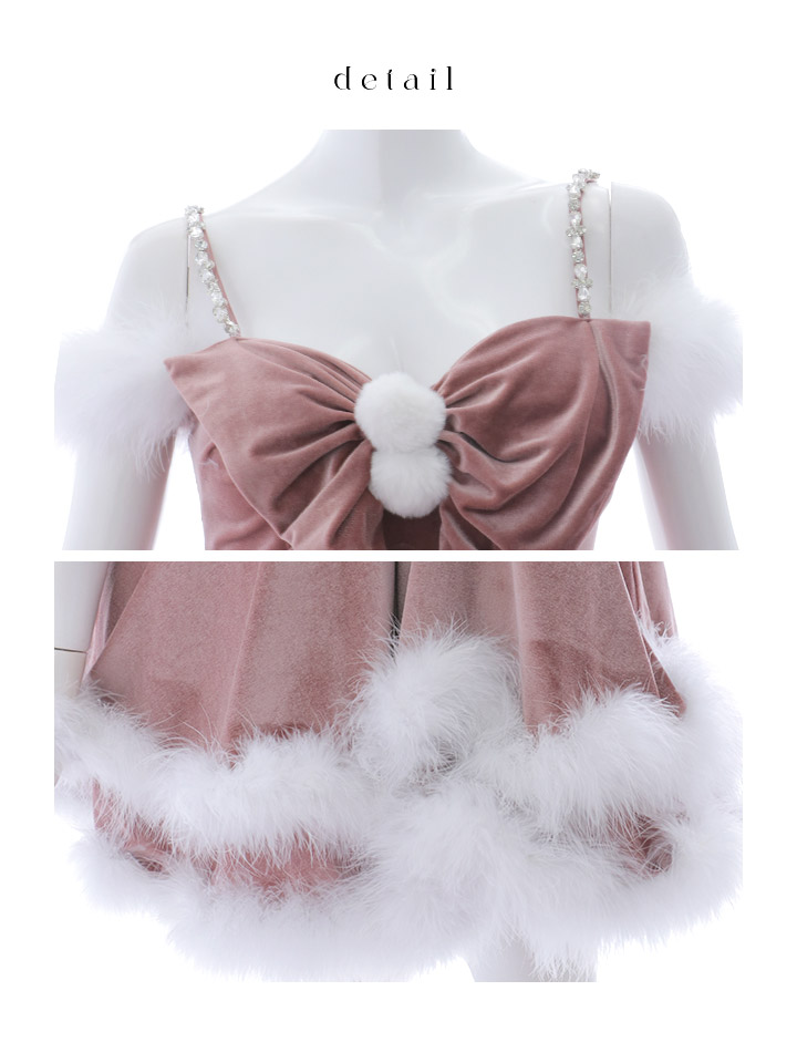 ビジューにファーに、クリスマス要素を存分に詰め込んだ1着。