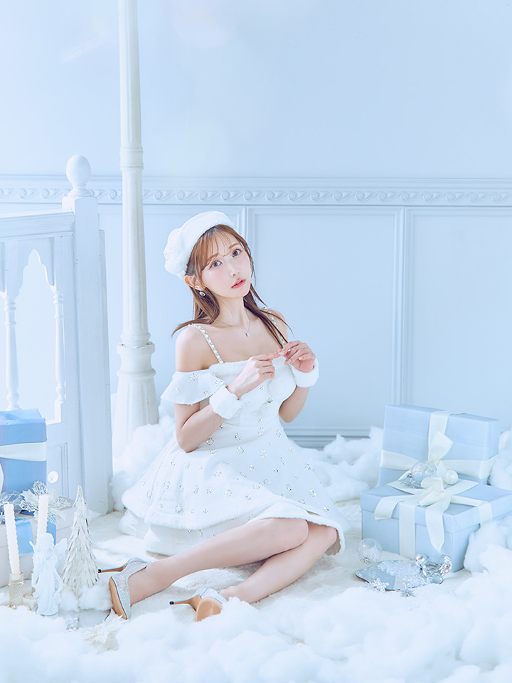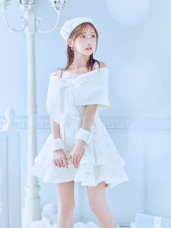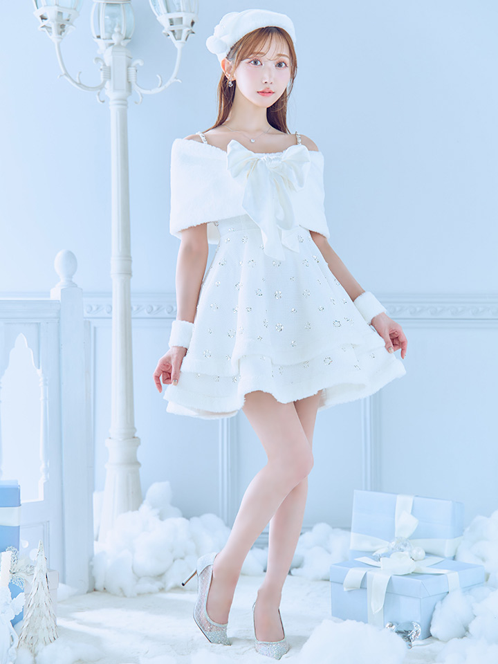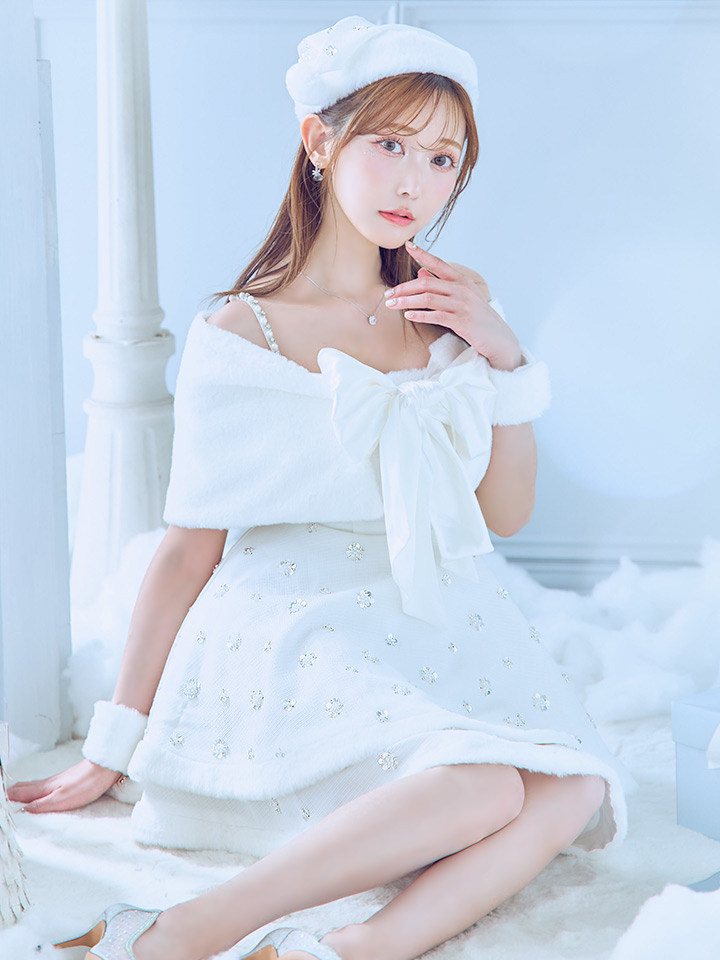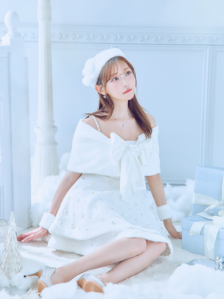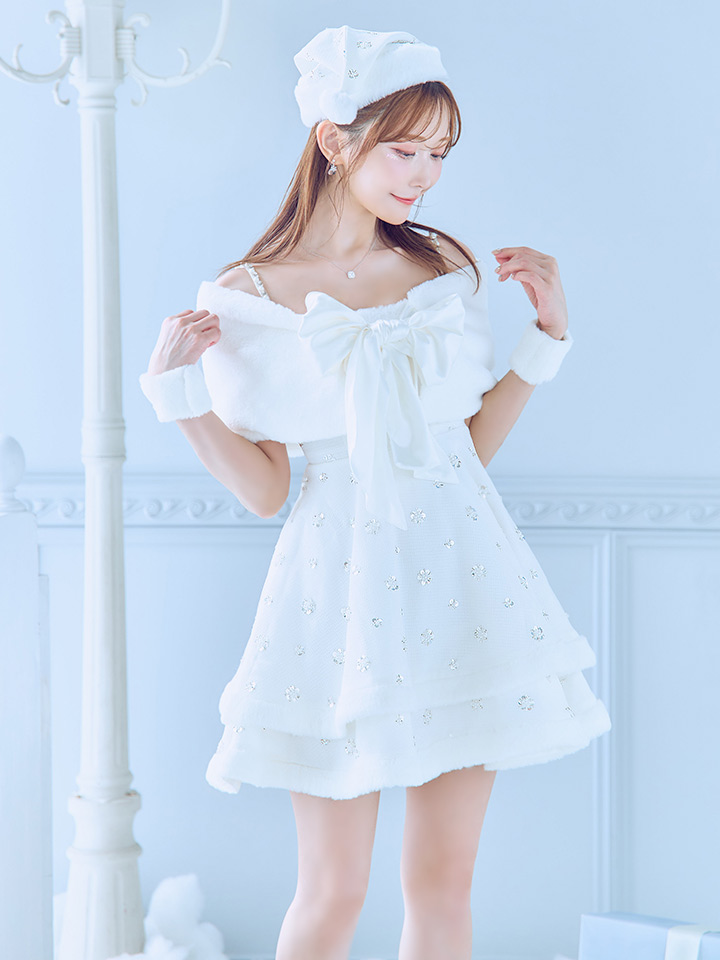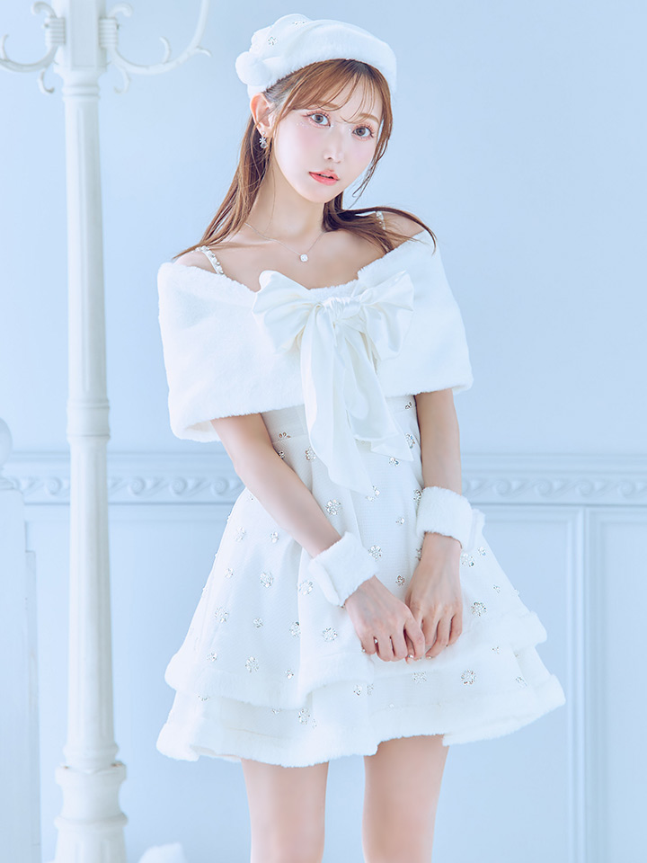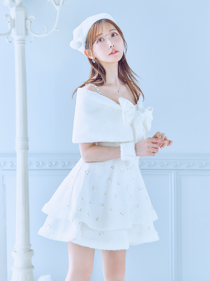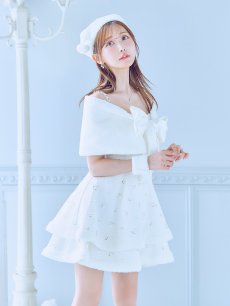 #フレア #2段フレア #オフショル #ビッグリボン #リボン #りぼん #ビジュー #パール #つぶつぶ #ボレロ #羽織
