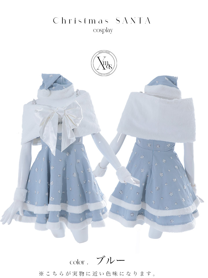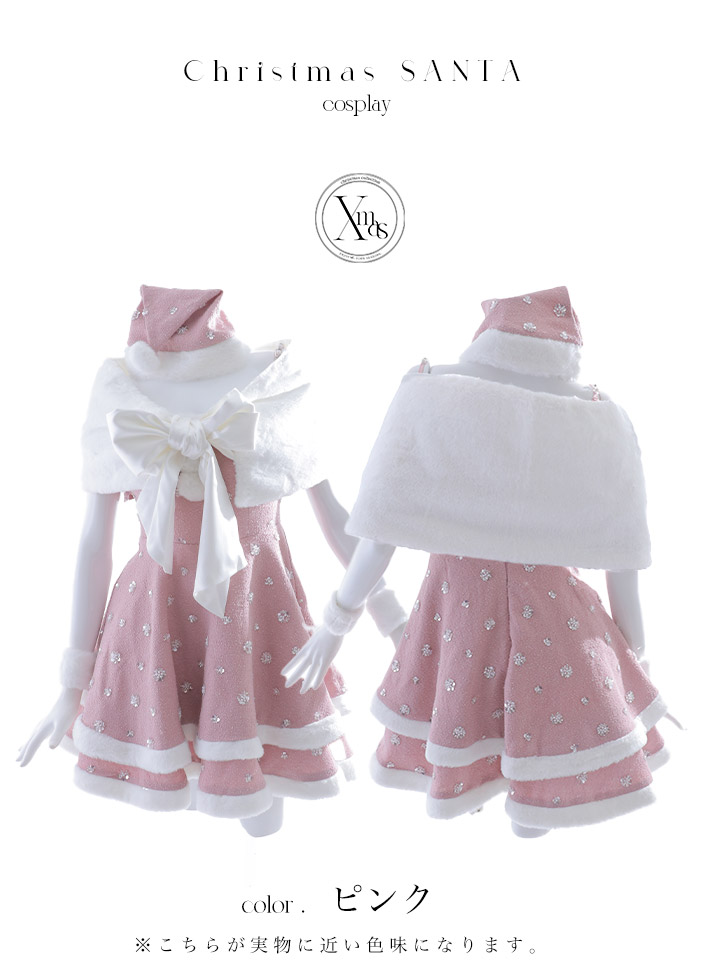 - > 【即日発送!】【サンタコス 5点セット】【XS-XLサイズ/3カラー】ケープ付きフレアサンタコスプレ[OF04]