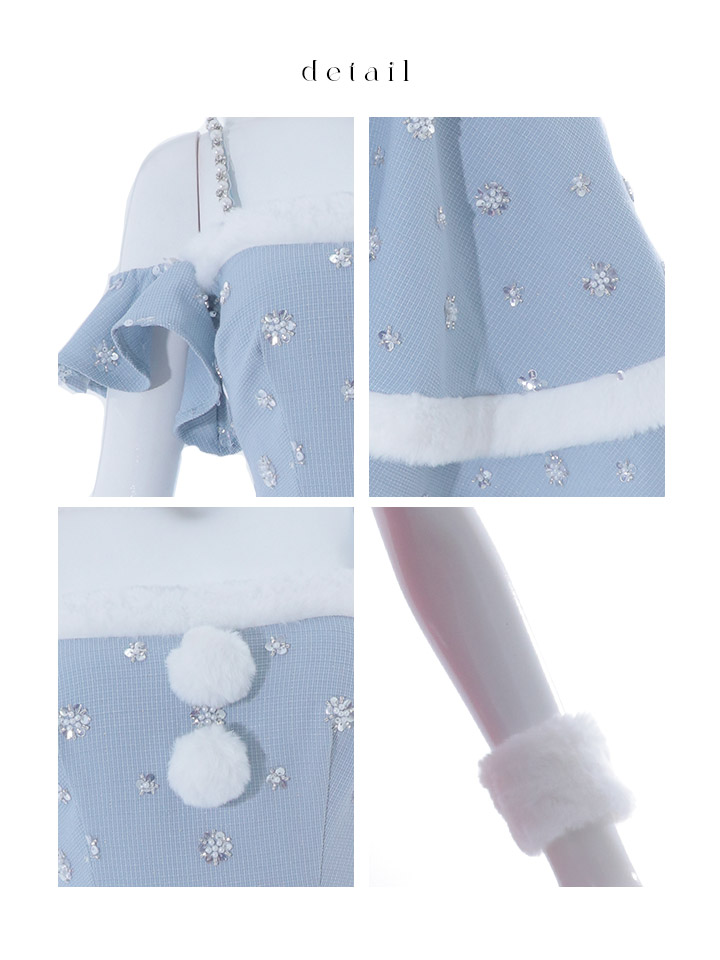 一部、肌に直接触れる部分にスパンコールが縫い付けられている場合がございます。