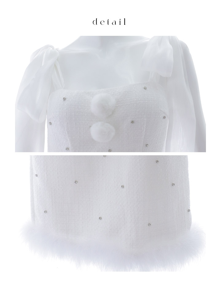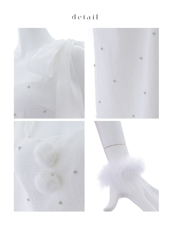 贅沢にあしらったビジューがきらびやかなツイードワンピースサンタコス。