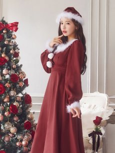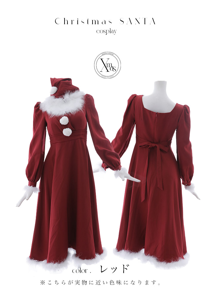 - > 【即日発送】【サンタコス 3点セット】【S-Lサイズ/1カラー】バックリボンフレアワンピースサンタコスプレ[OF01]