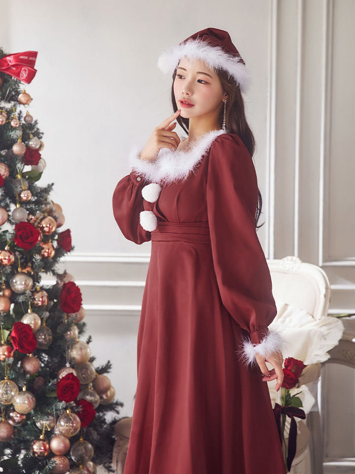 誰でも着やすいシンプルなデザインが嬉しいワンピースサンタコスプレ。