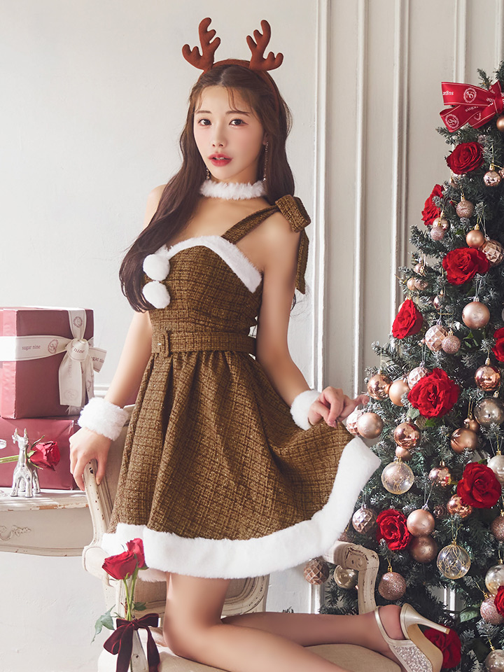 #ツイード #リボン #トナカイ #フレア #ミニ #ワンピース #クリスマス #パーティ #サンタコス #サンタさん
