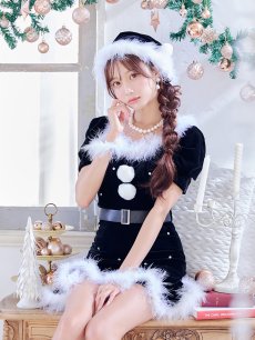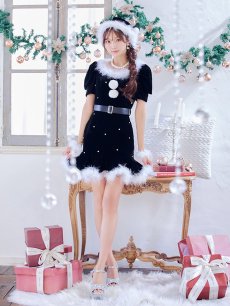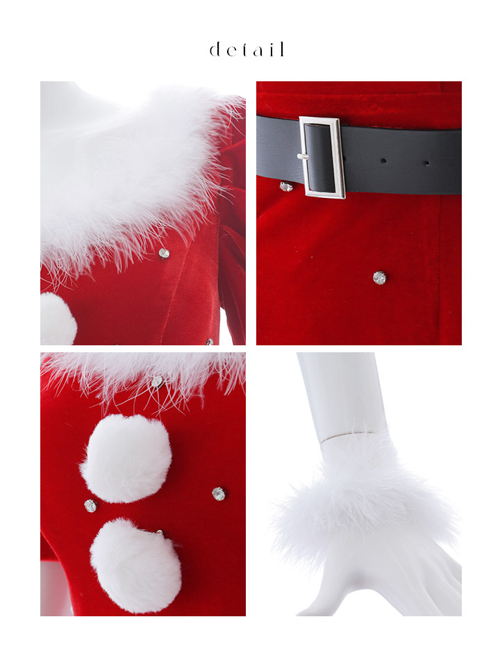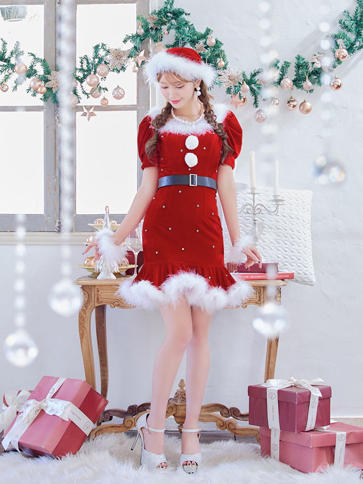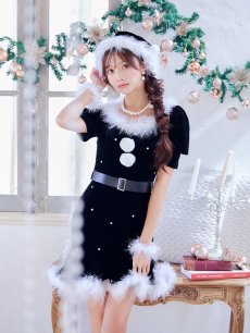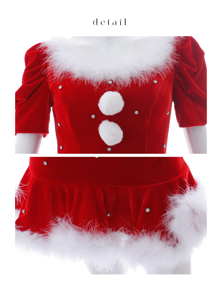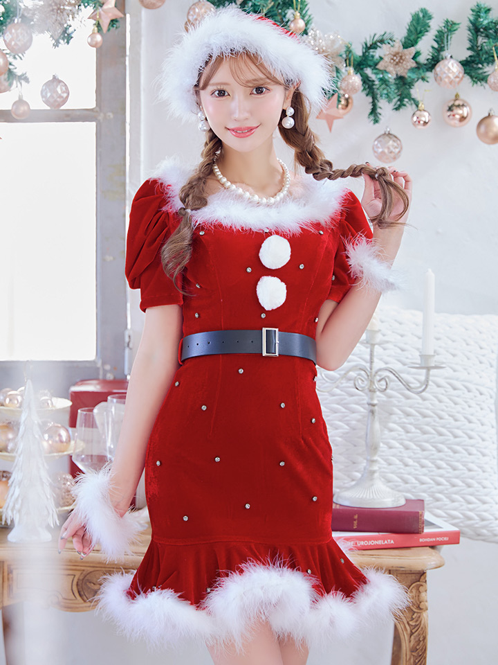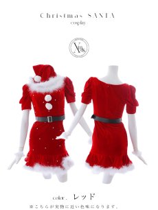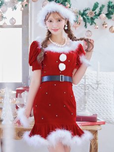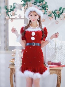 - > 【即日発送】【サンタコス 5点セット】【S-Mサイズ/2カラー】ベロアパールビジューサンタコスプレ[OF01]