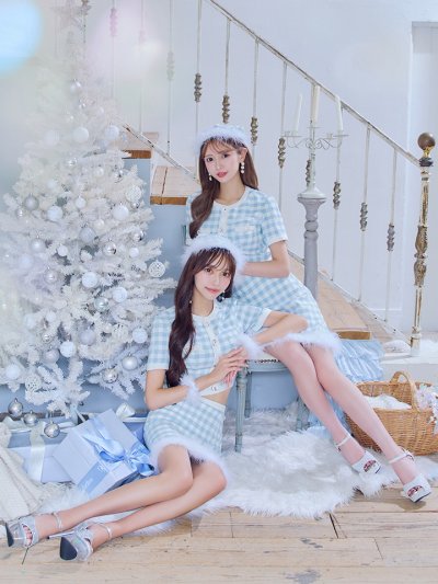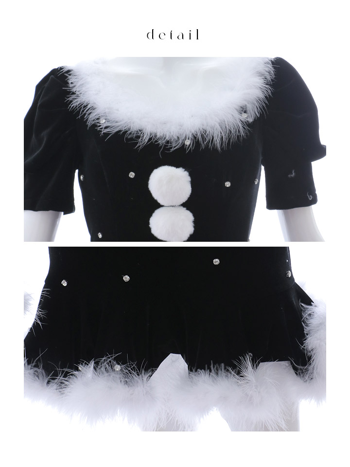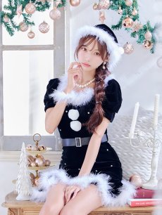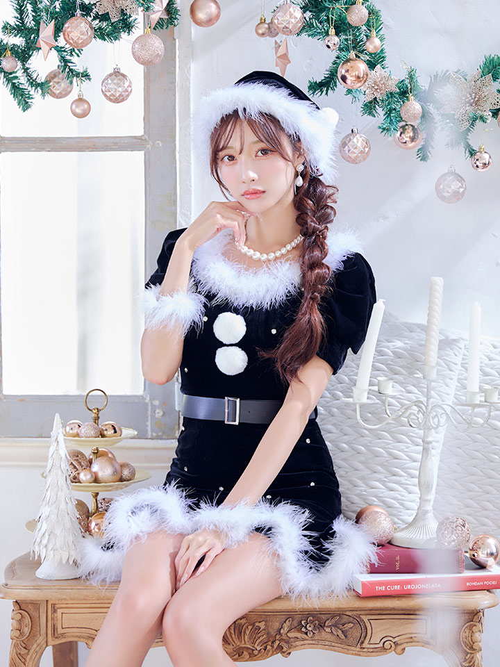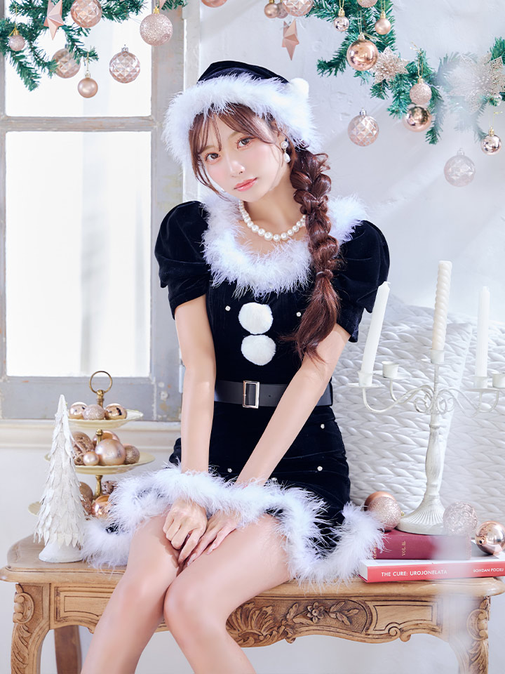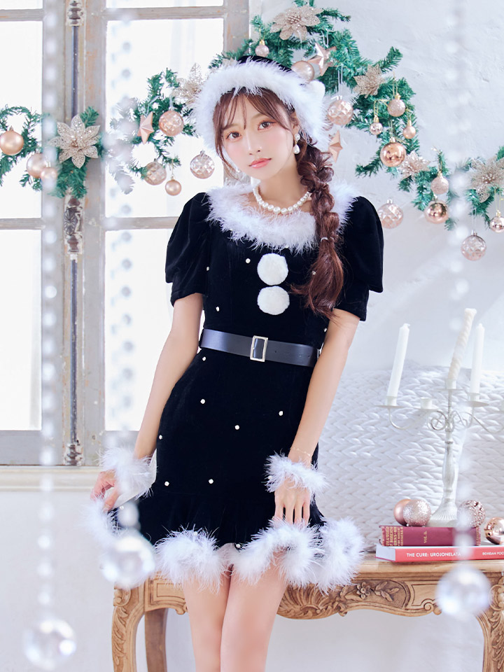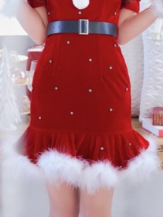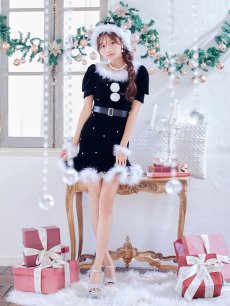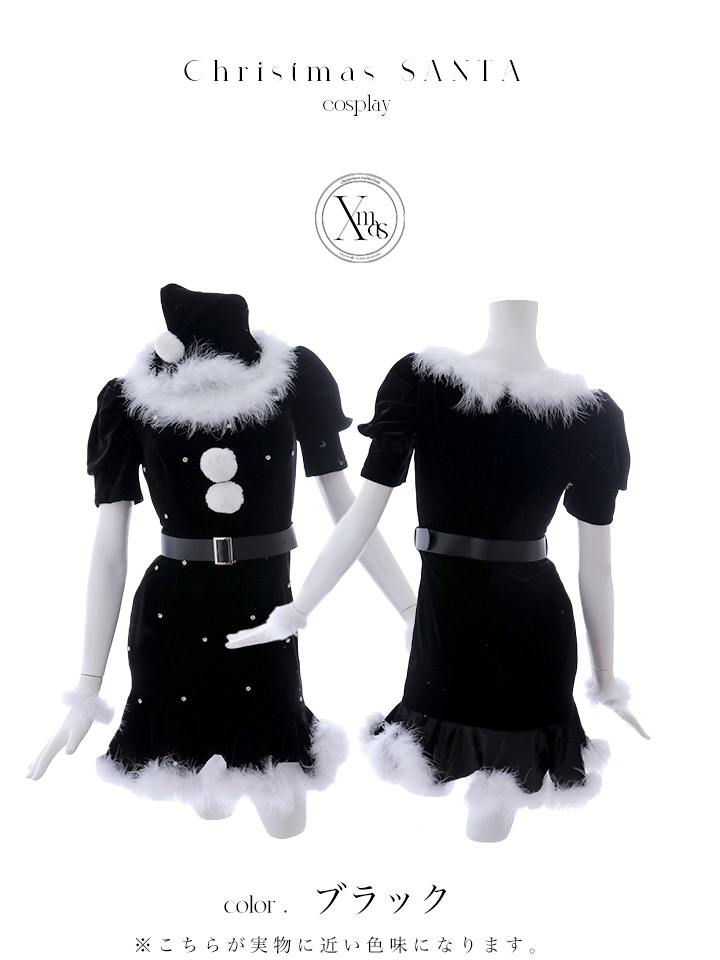 - > 【即日発送】【サンタコス 5点セット】【S-Mサイズ/2カラー】ベロアパールビジューサンタコスプレ[OF01]