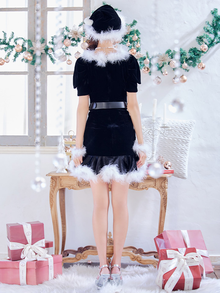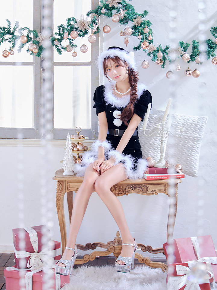 ボリューム袖で体型カバーも叶って誰でも着やすいワンピースサンタコスプレ♥