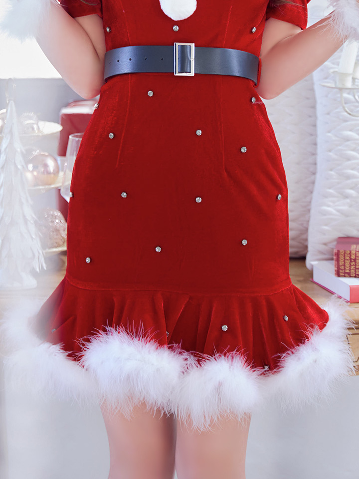 #半袖 #ワンピース #定番 #タイト #ベロア #つぶつぶ #ビジュー #クリスマス #パーティ #サンタコス #サンタさん
