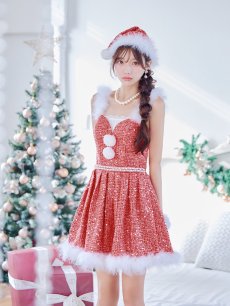 【一部予約商品/11月中旬発送予定】【サンタコス 4点セット】【XS-XLサイズ/3カラー】ラメツイードミニワンピースサンタ[OF01]