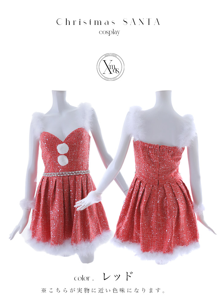 - > 【一部予約商品/11月中旬発送予定】【サンタコス 4点セット】【XS-XLサイズ/3カラー】ラメツイードミニワンピースサンタ[OF01]