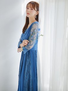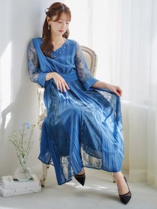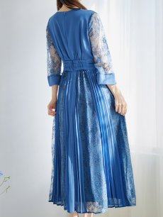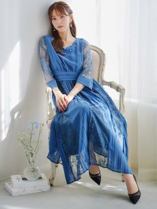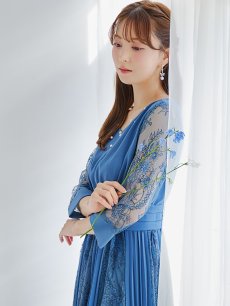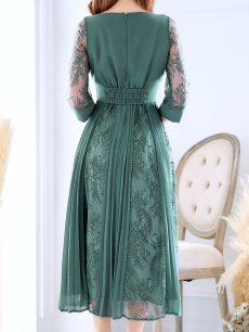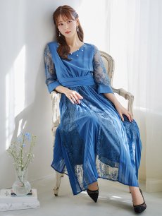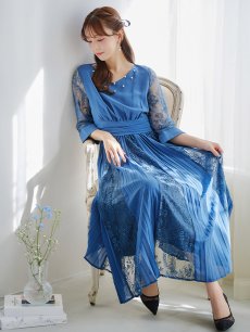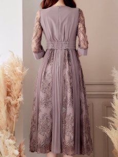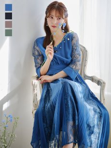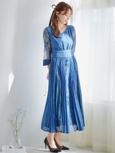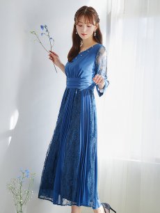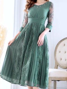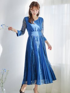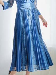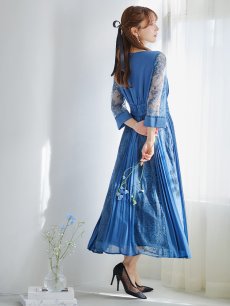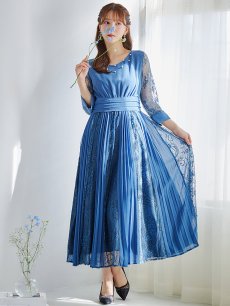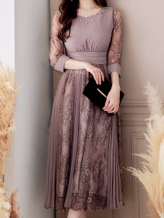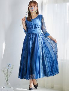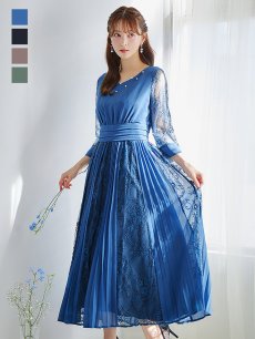 オケージョンドレス/ パーティードレス/ お呼ばれドレス/ プリーツ/ Aライン/ 総レース/ 袖あり/ 七分袖/ ミモレ丈/ ワンピース[OF05]