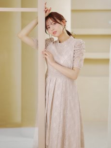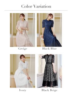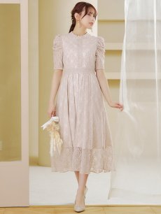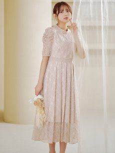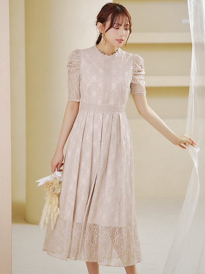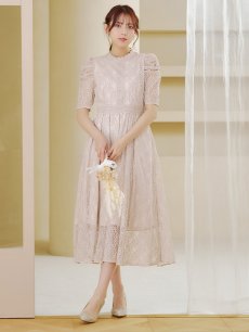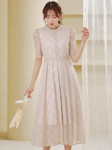 オケージョンドレス/ パーティードレス/ お呼ばれドレス/ 総レース/ パフスリーブ/ 袖あり/ 五分袖/ ミモレ丈/ ワンピース[OF05] [G32990HL-Greige-S2301]
