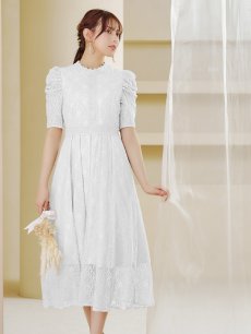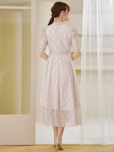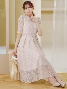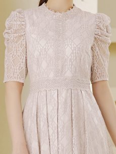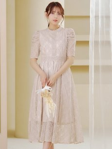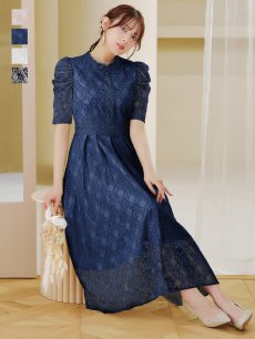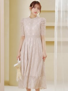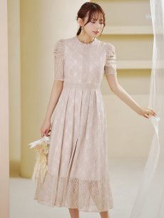 オケージョンドレス/ パーティードレス/ お呼ばれドレス/ 総レース/ パフスリーブ/ 袖あり/ 五分袖/ ミモレ丈/ ワンピース[OF05]