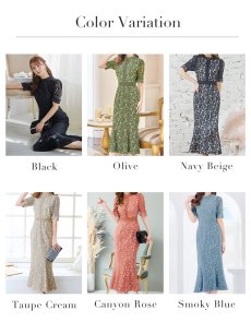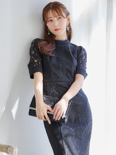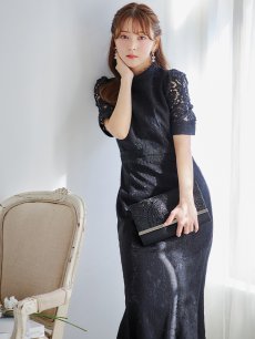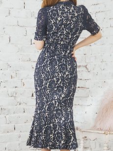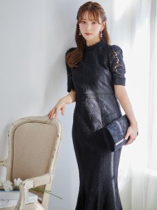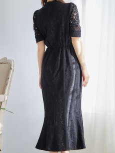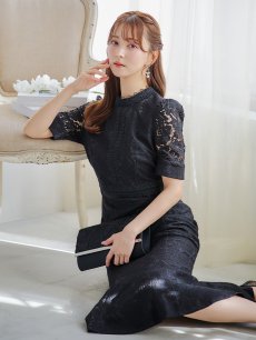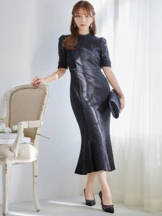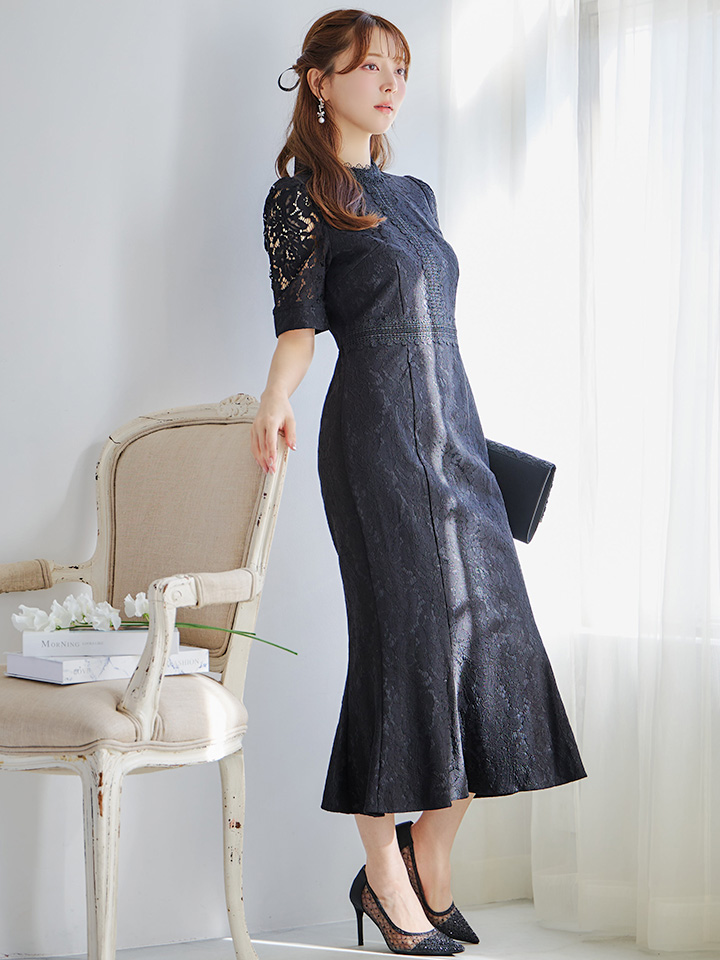 オケージョンドレス/ パーティードレス/ お呼ばれドレス/ 総レース/ パフスリーブ/ 袖あり/ 五分袖/ ミモレ丈/ マーメイド/ ワンピース[OF05] [G60020HL-B-S2311]