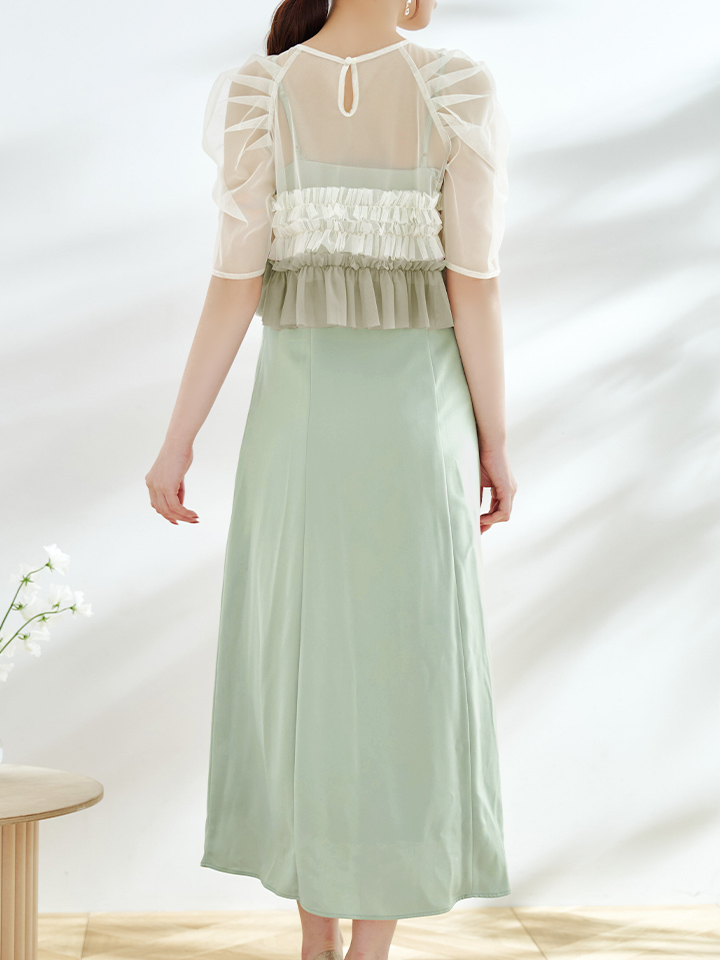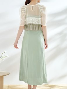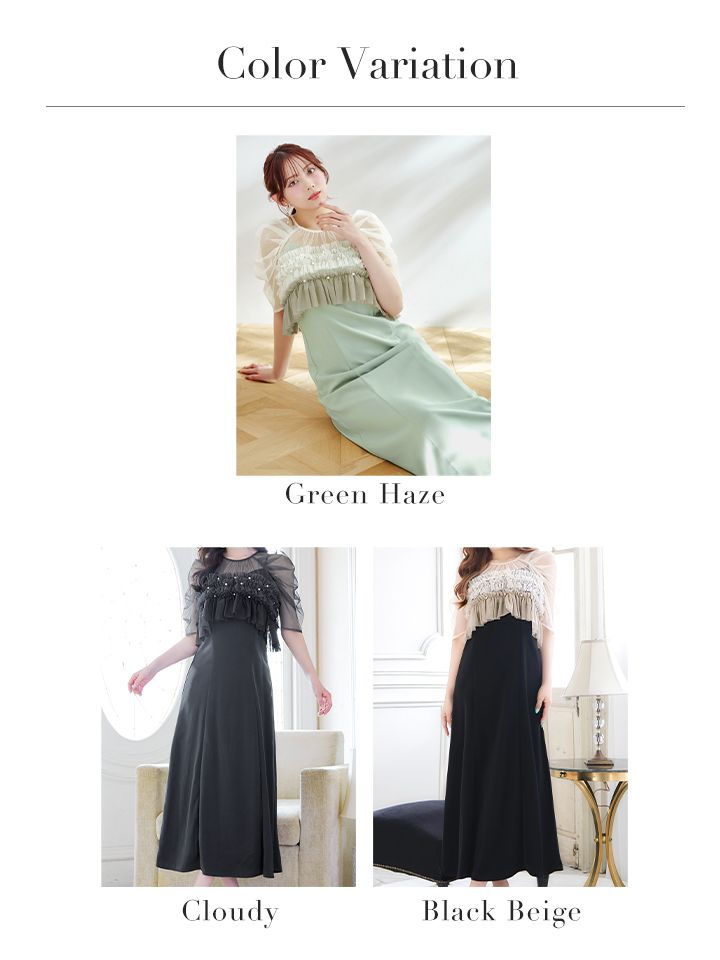 オケージョンドレス/ パーティードレス/ お呼ばれドレス/ グラデーション/ チュール/ フリル/ 袖あり/ 半袖/ ミモレ丈/ ワンピース/ ミディアムドレス[OF05] [G9836HL-GRhaze-S2408]