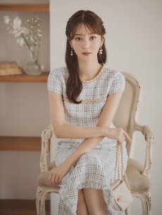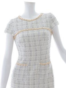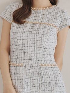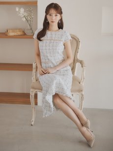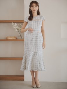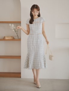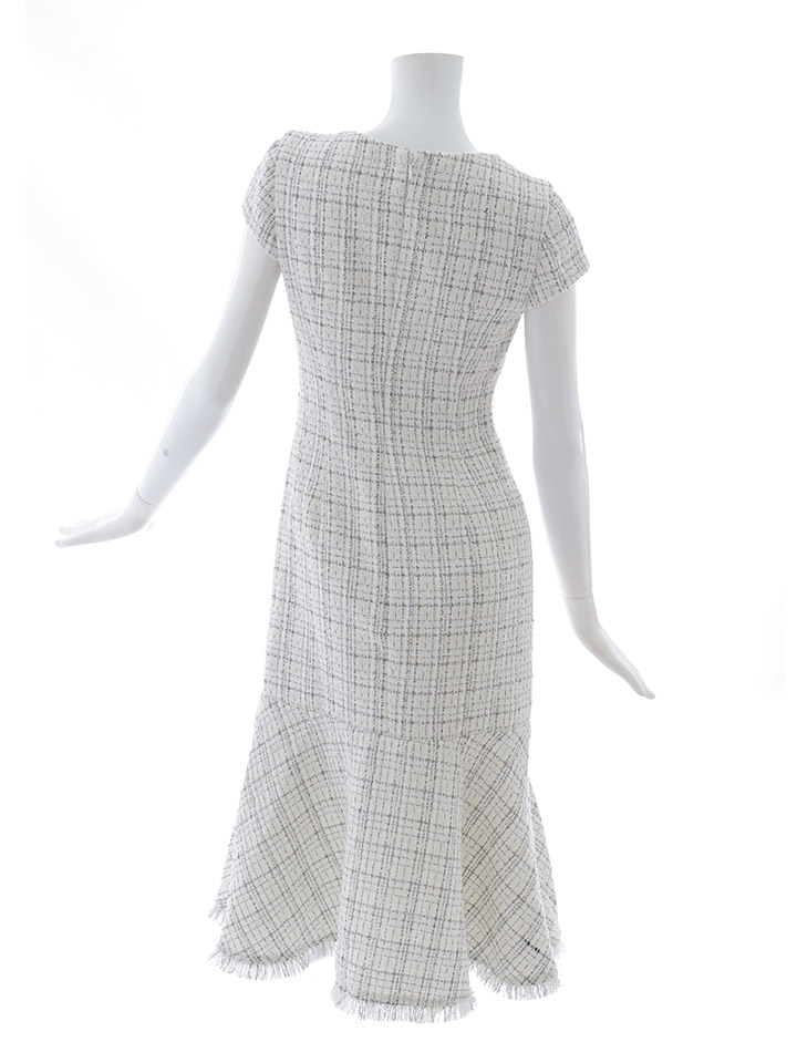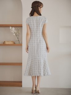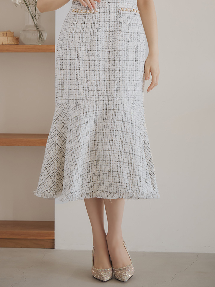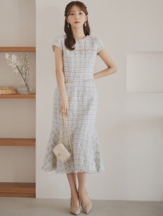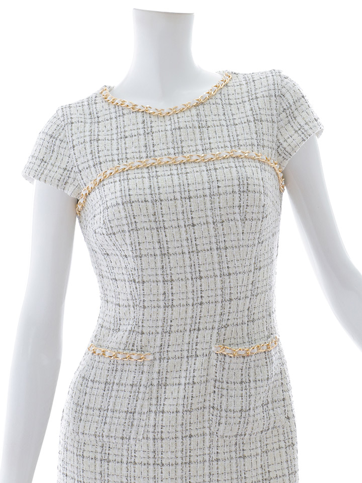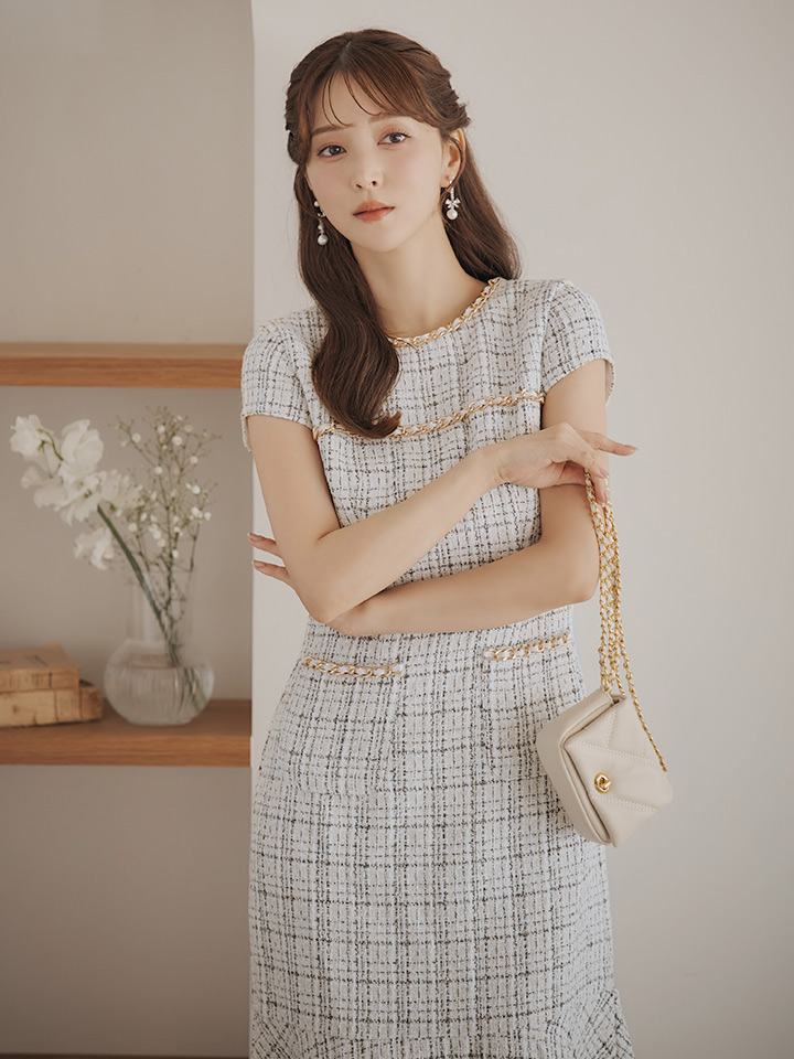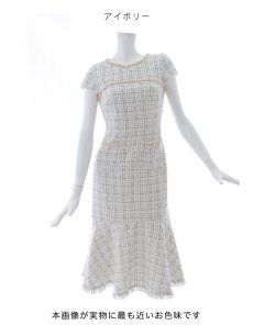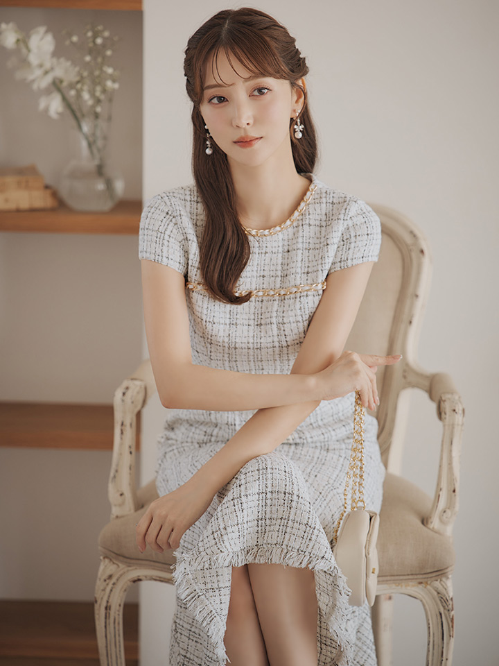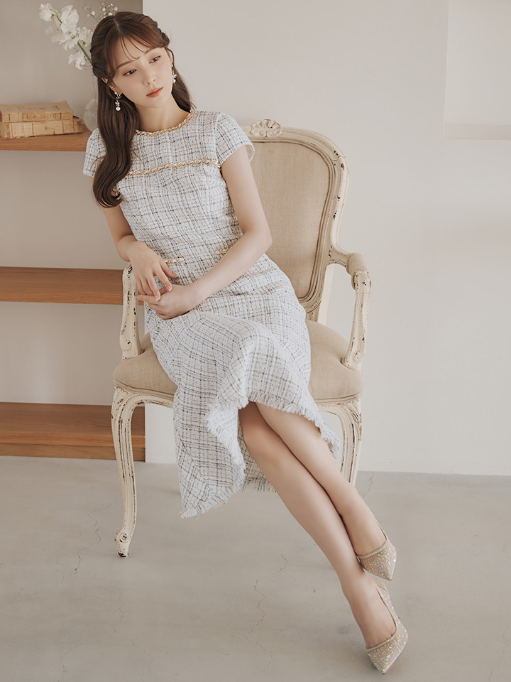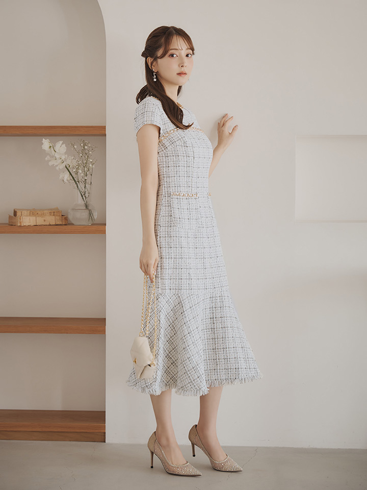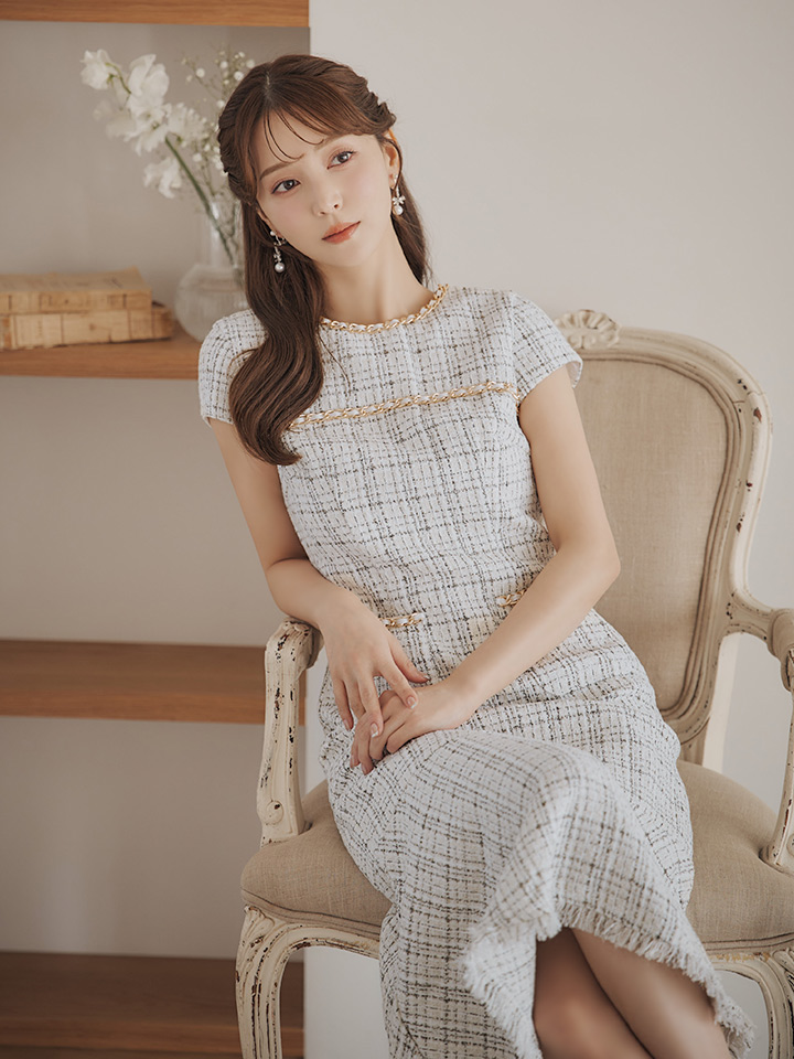 ツイードマーメイドドレス/ノースリーブ/チェーン/谷間隠し/ミディアムドレス【S-Lサイズ/1カラー】[OF03] 【YN】dzw [5195YNdzw-240828-1]