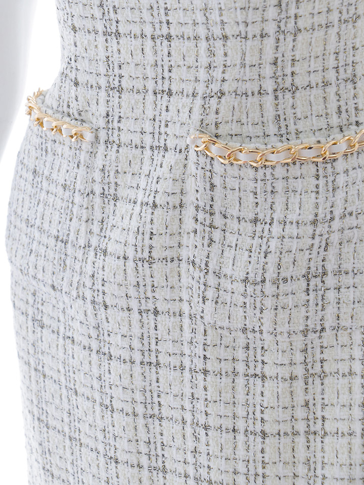 ツイードマーメイドドレス/ノースリーブ/チェーン/谷間隠し/ミディアムドレス【S-Lサイズ/1カラー】[OF03] 【YN】dzw