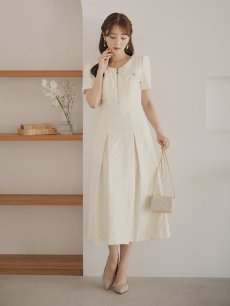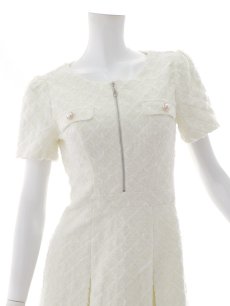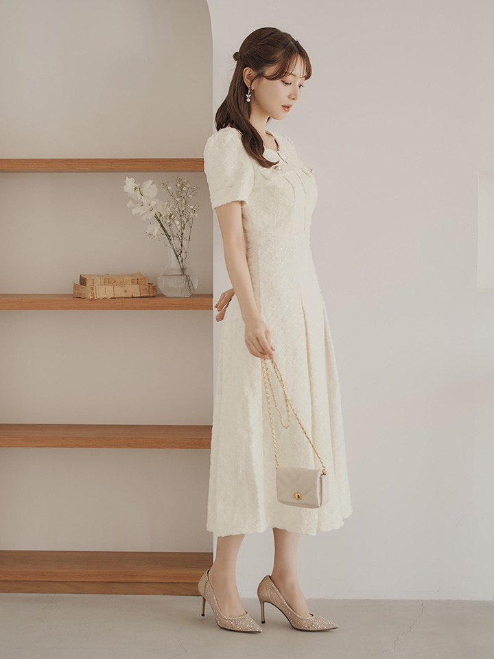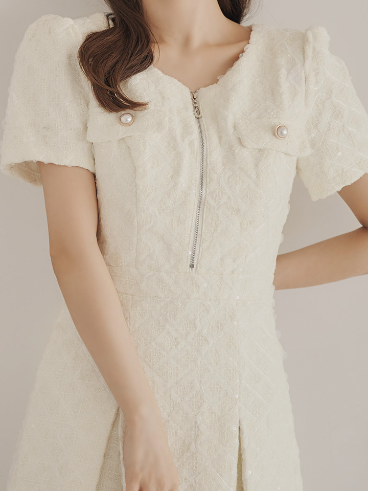 ツイードミディアムドレス/ジップアップ/パール/フレアスカート/背中隠し【S-Lサイズ/1カラー】[OF04] 【SB】dzj [3198SBdzj-240828-1]