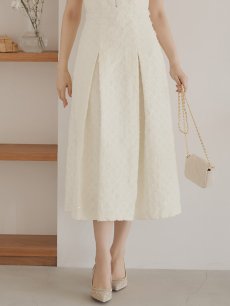 ウエストはしっかり絞り、ロング丈スカートが足長効果