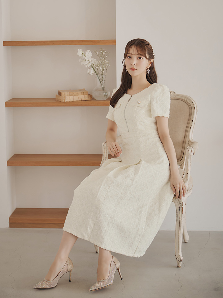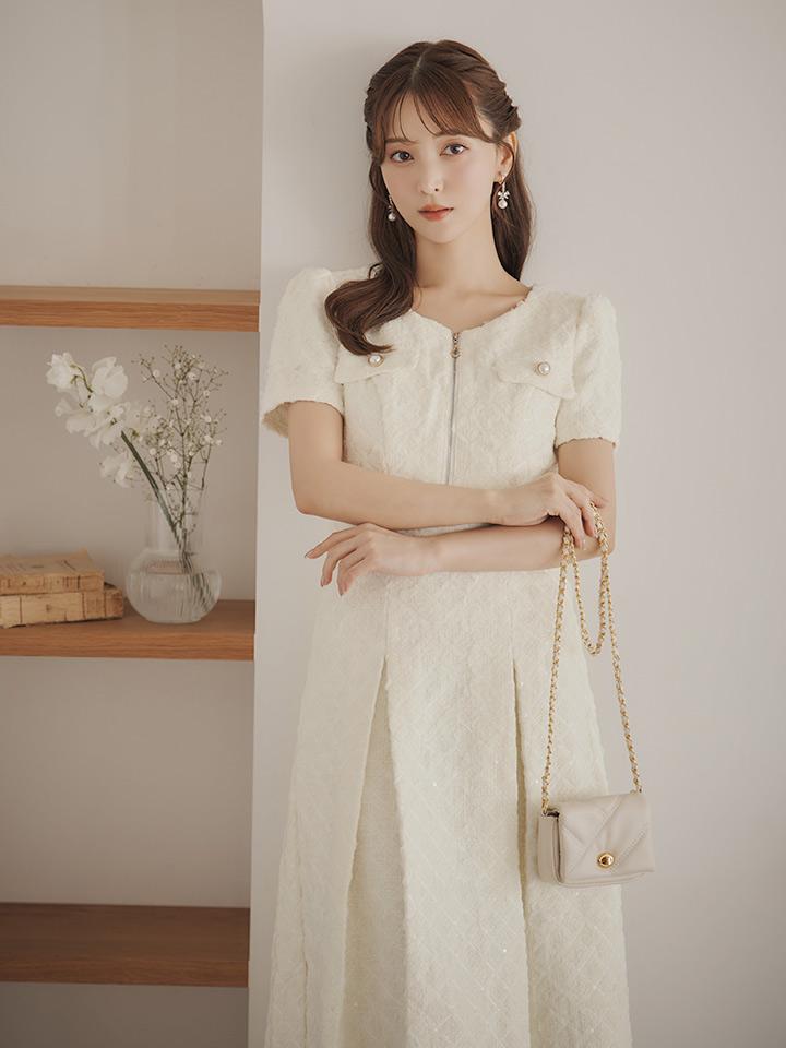 ツイード×ホワイトが可愛い?お嬢様ワンピの秋ドレスが登場?