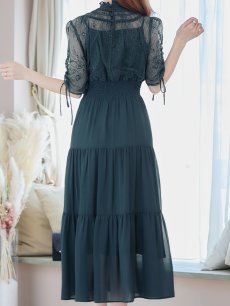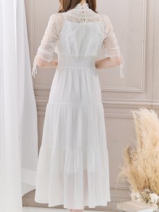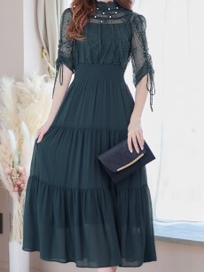 オケージョンドレス/ パーティードレス/ お呼ばれドレス/ ハイネック/ レース/ 袖あり/ Aライン/ ミモレ丈/ ワンピース[OF05]