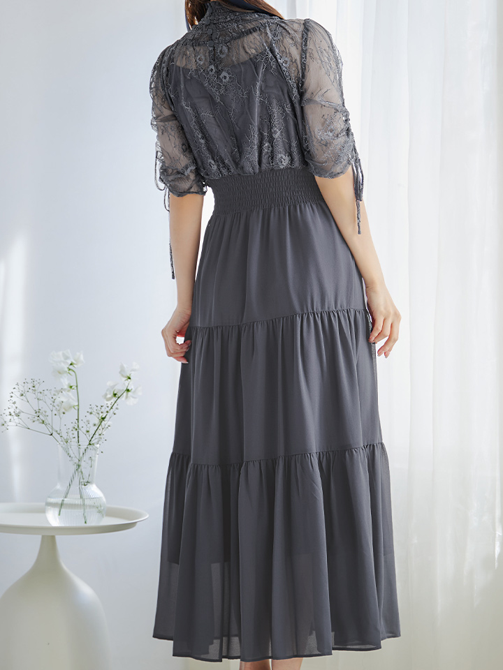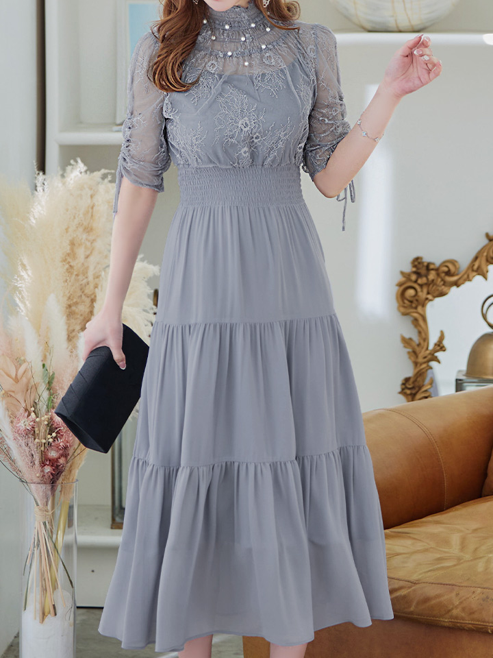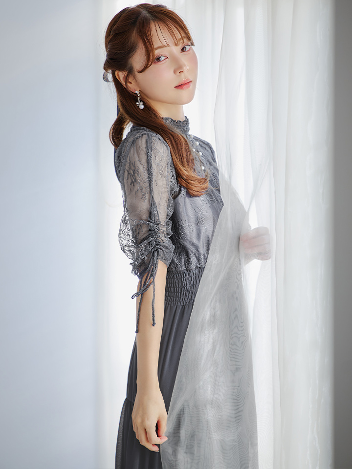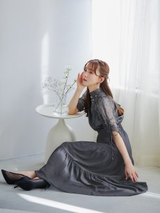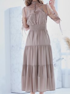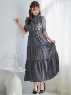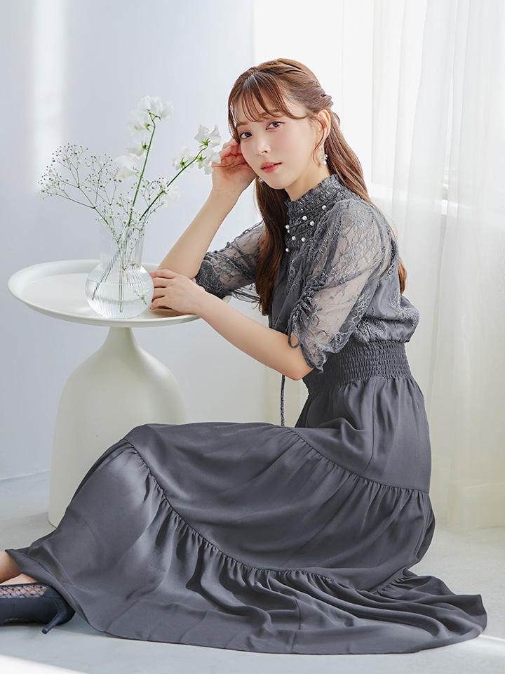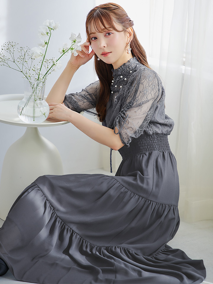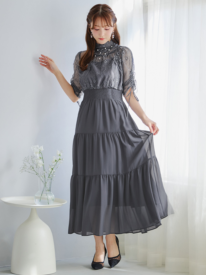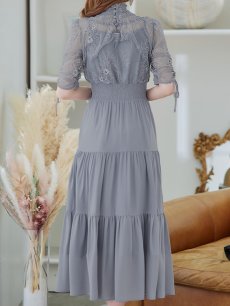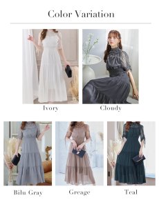 オケージョンドレス/ パーティードレス/ お呼ばれドレス/ ハイネック/ レース/ 袖あり/ Aライン/ ミモレ丈/ ワンピース[OF05] [G9827HL-Cloudy-S2305]