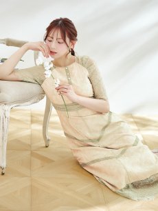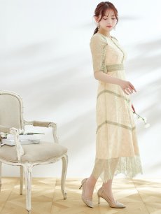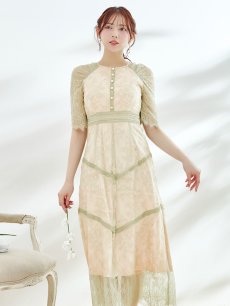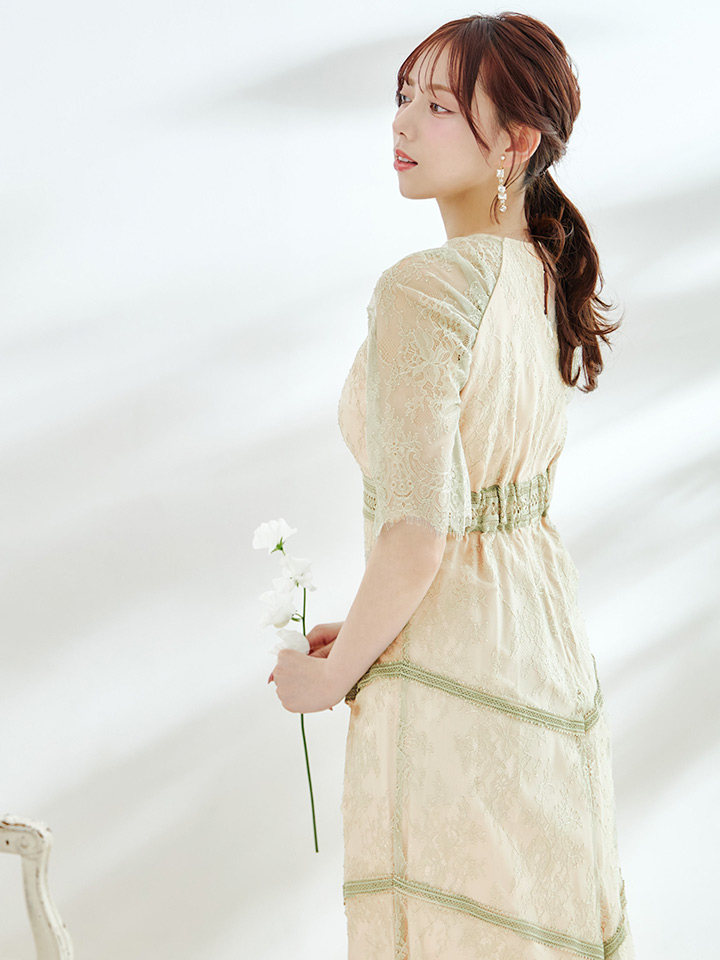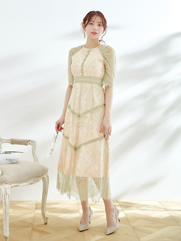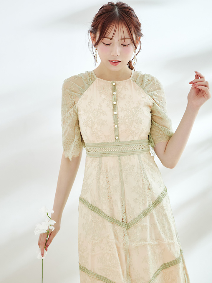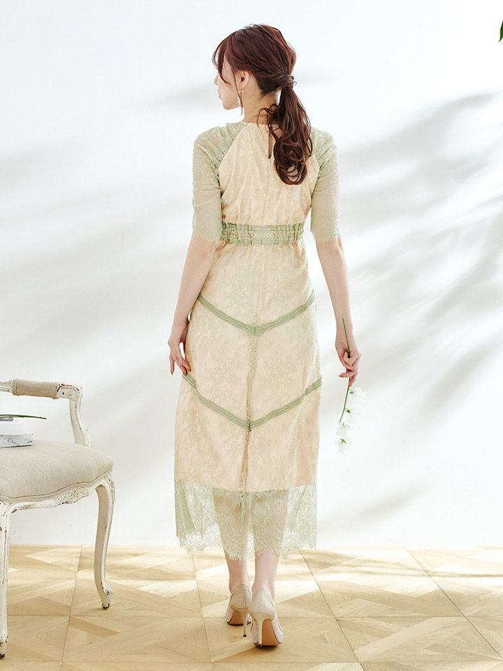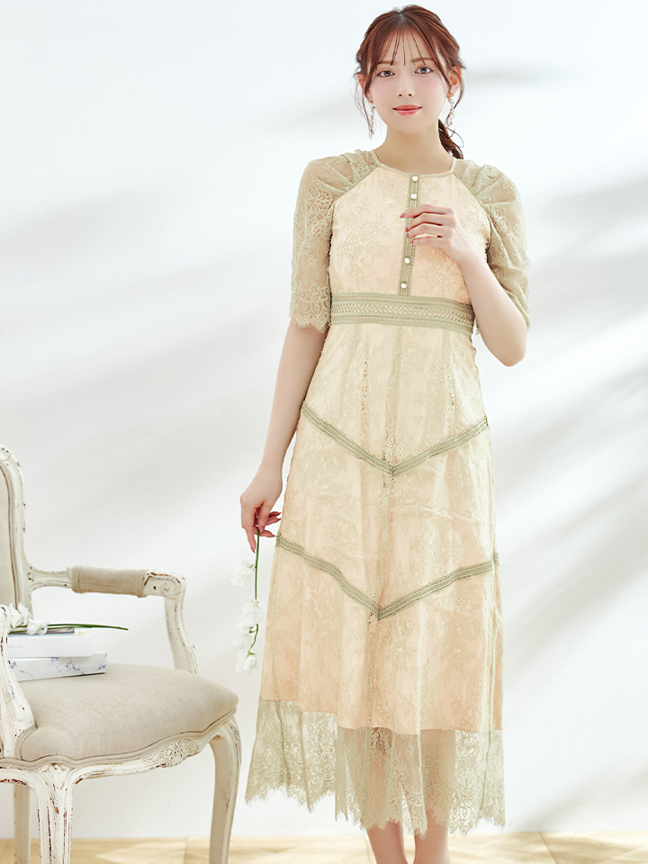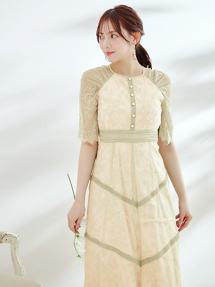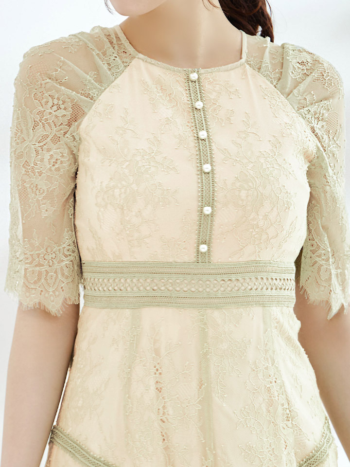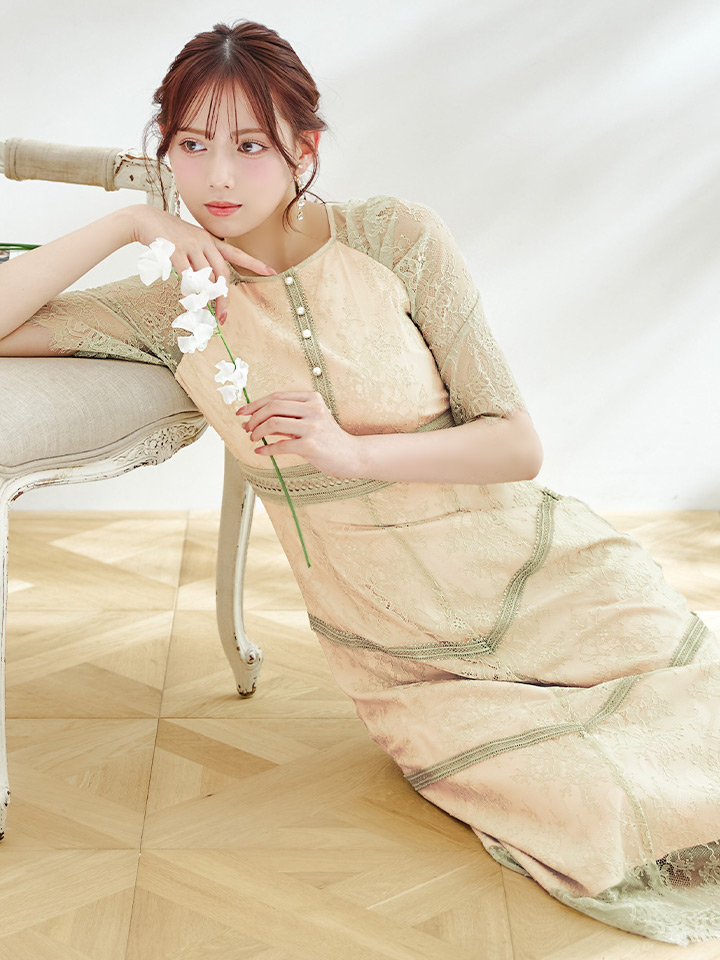 オケージョンドレス/ パーティードレス/ お呼ばれドレス/ パール/ 総レース/ 袖あり/ 七分袖/ ミモレ丈/ ワンピース/ [OF05] [G9820HL-MuscatGR-S2210]