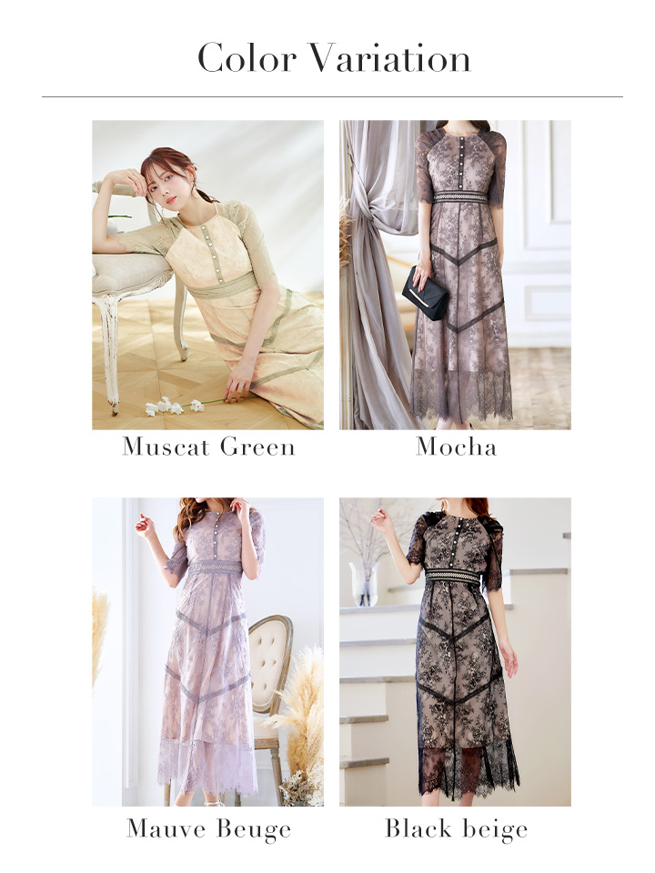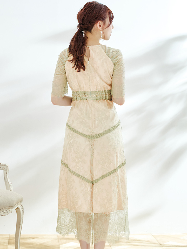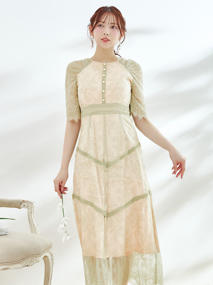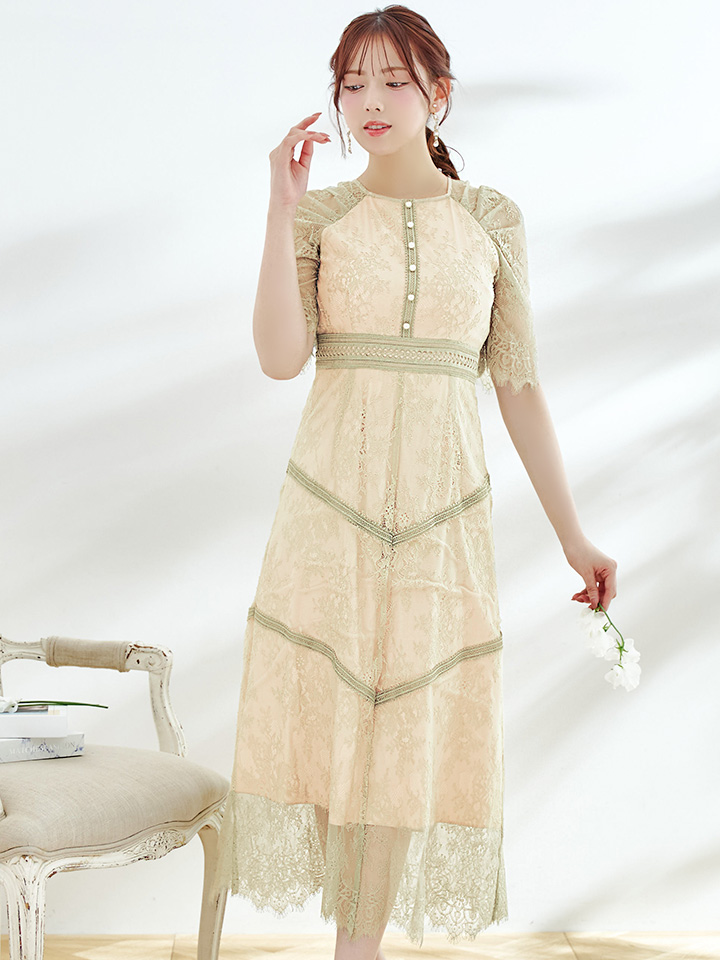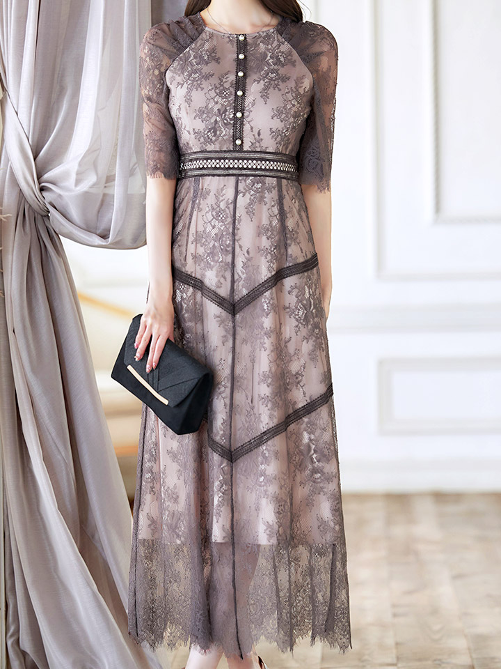 さりげない透け感が上品な総レースワンピースドレス