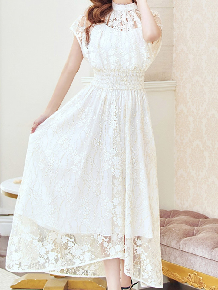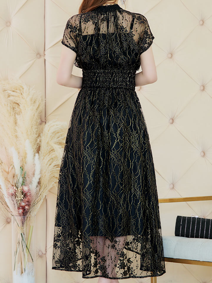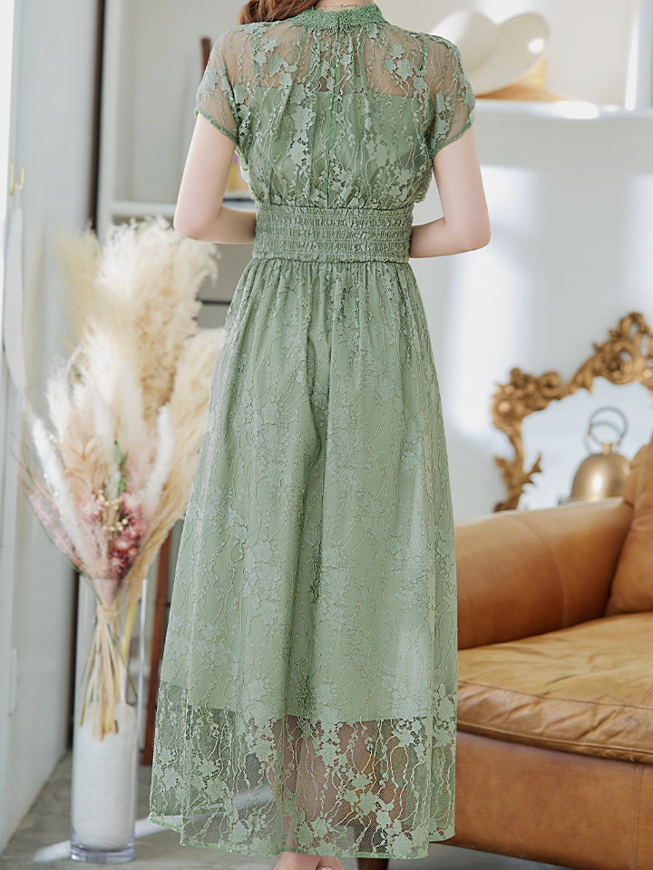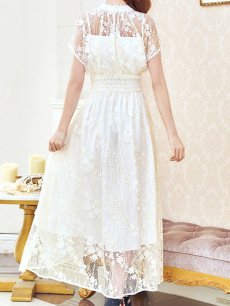 総レースがエレガントなミモレ丈ワンピースドレス♡