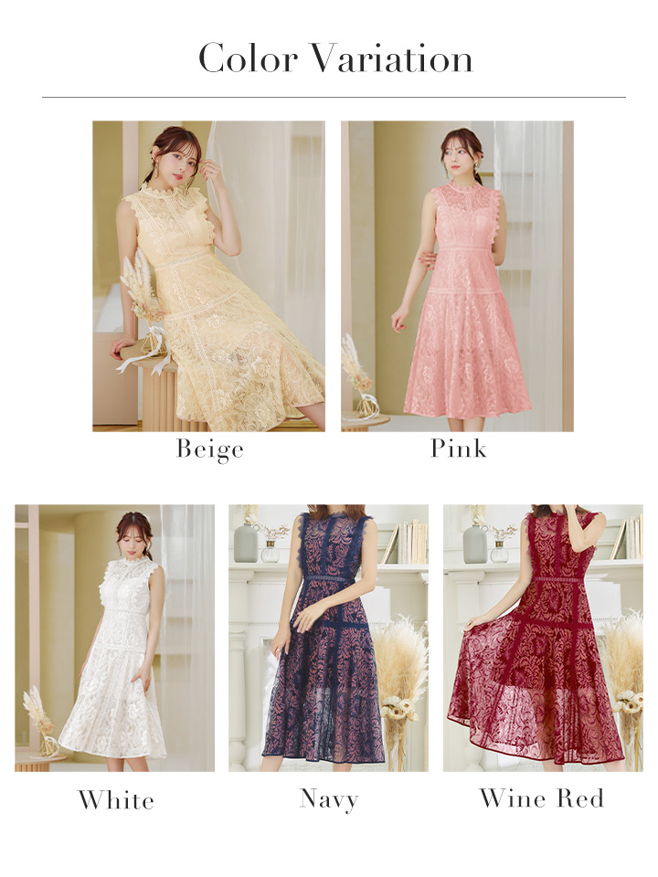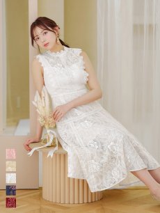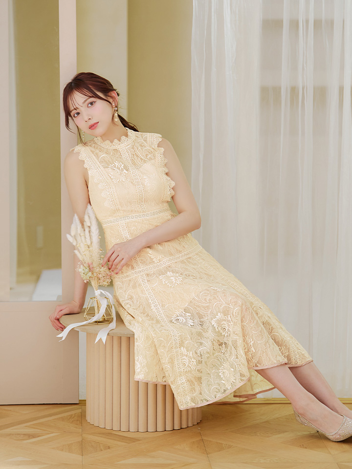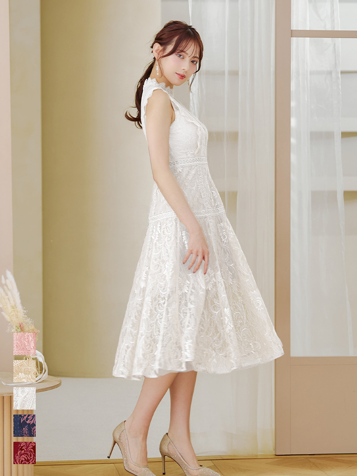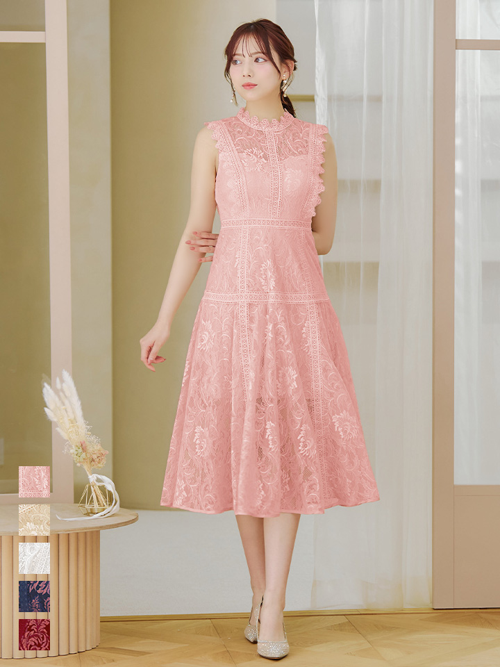 フラワーレースがフェミニンなミディアムドレスワンピース♡