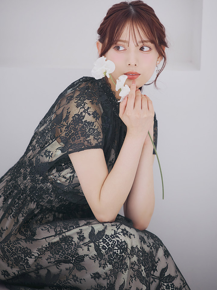 オケージョンドレス/ パーティードレス/ お呼ばれドレス/ 総レース/ タック/ ハイネック/ ミモレ丈/ テールカット/ ワンピース/ [OF05] [G32984HL-BBE-S2305]