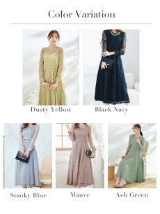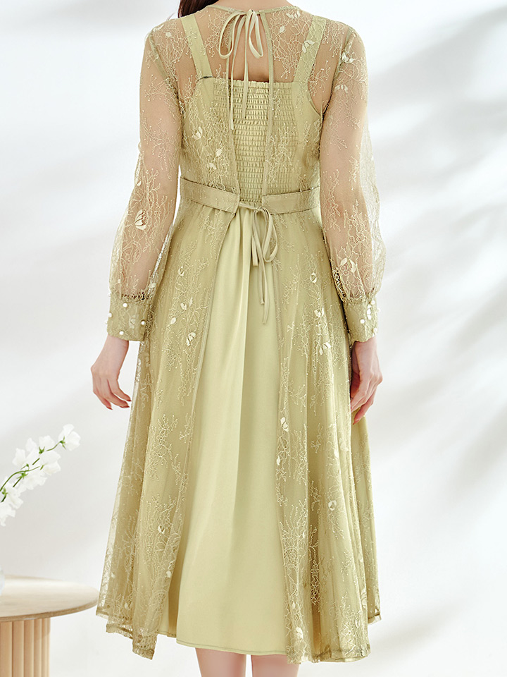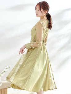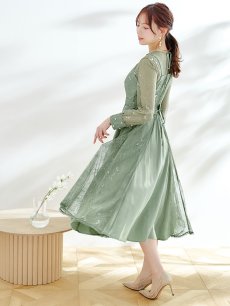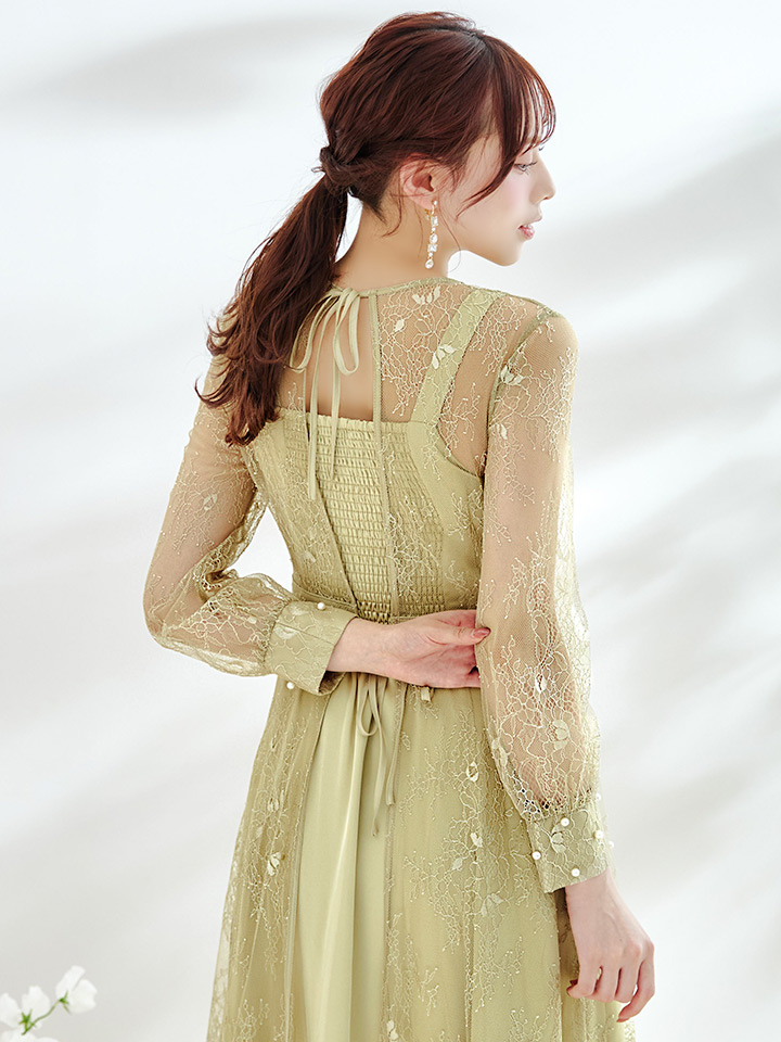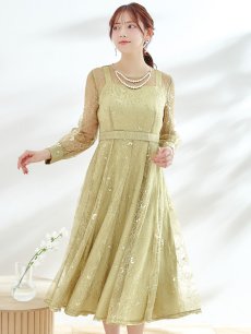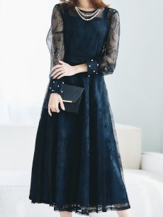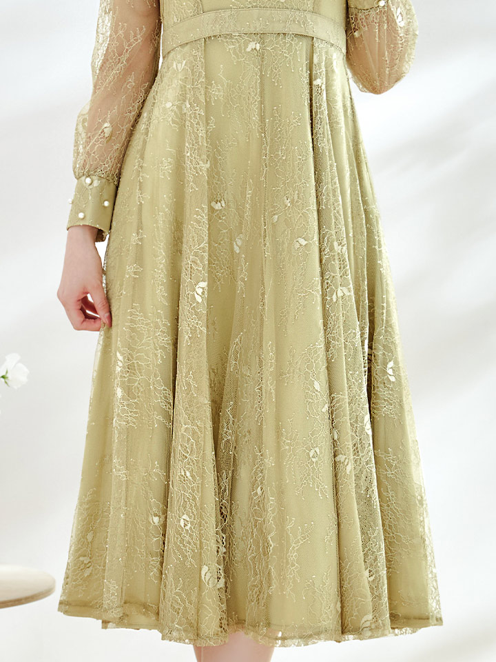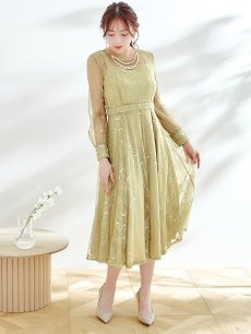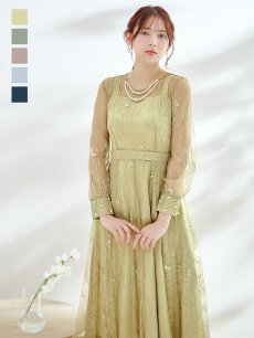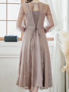 エレガントな総レースが女性らしいミモレ丈ワンピースドレス