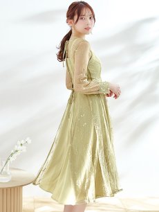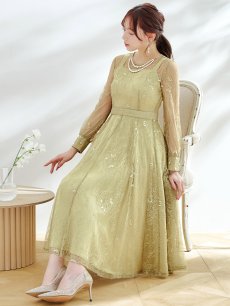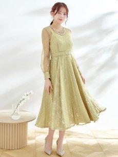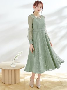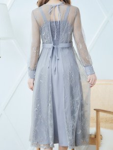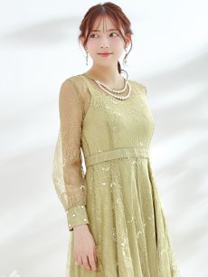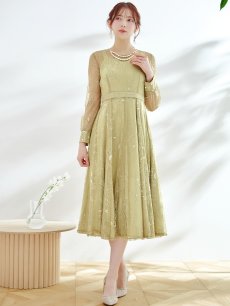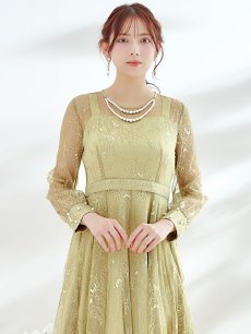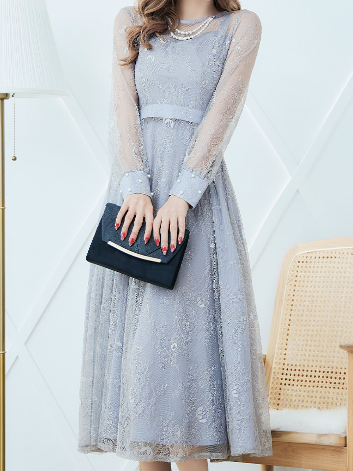 オケージョンドレス/ パーティードレス/ お呼ばれドレス/ アクセサリー付き/ 総レース/ 袖あり/ 長袖/ ミモレ丈/ ワンピース[OF05] [G9826HL-AshGR-S2409]