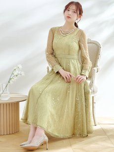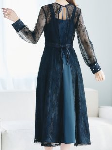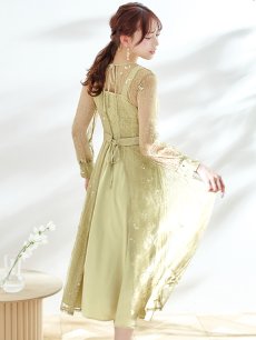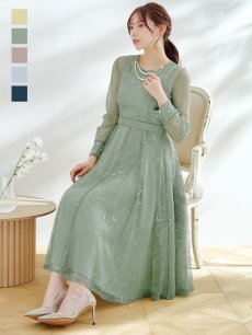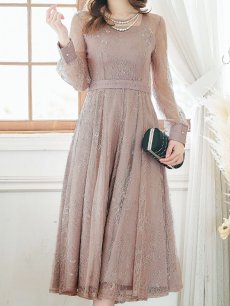 オケージョンドレス/ パーティードレス/ お呼ばれドレス/ アクセサリー付き/ 総レース/ 袖あり/ 長袖/ ミモレ丈/ ワンピース[OF05]