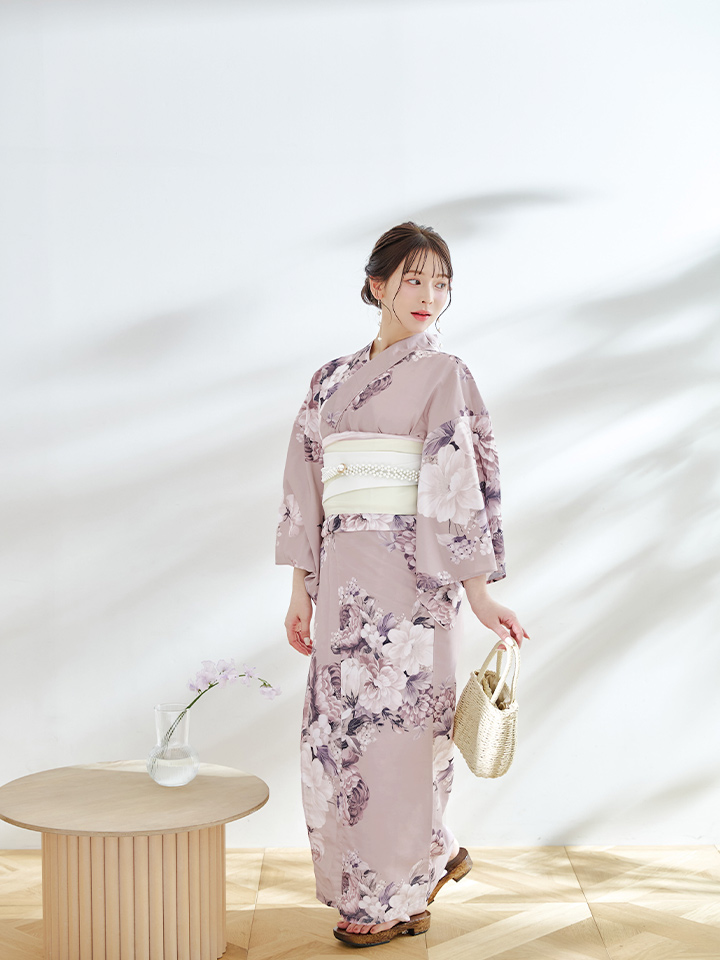 【即日発送】【浴衣】大人スウィートフラワー 牡丹柄 浴衣 【浴衣3点セット 浴衣/帯/下駄】 [YMT]