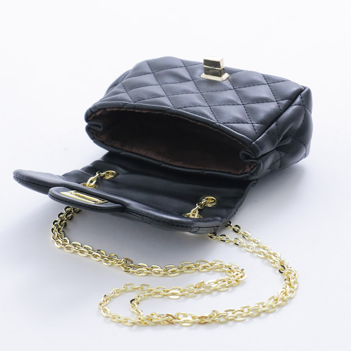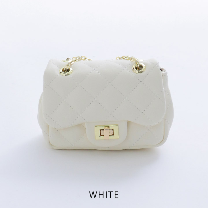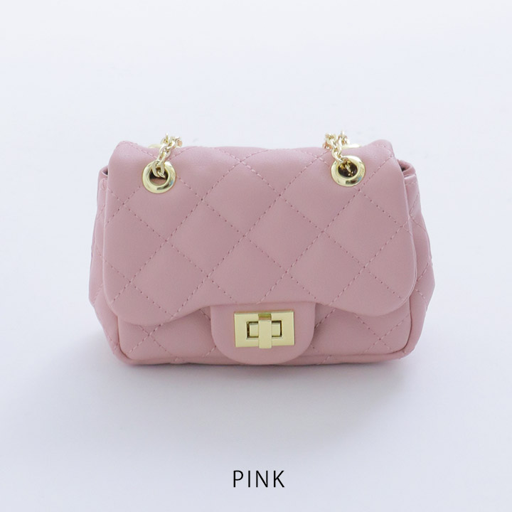 コンパクトなミニサイズのショルダーバッグ。 キルティング生地が上品で可愛らしいアイテムです。