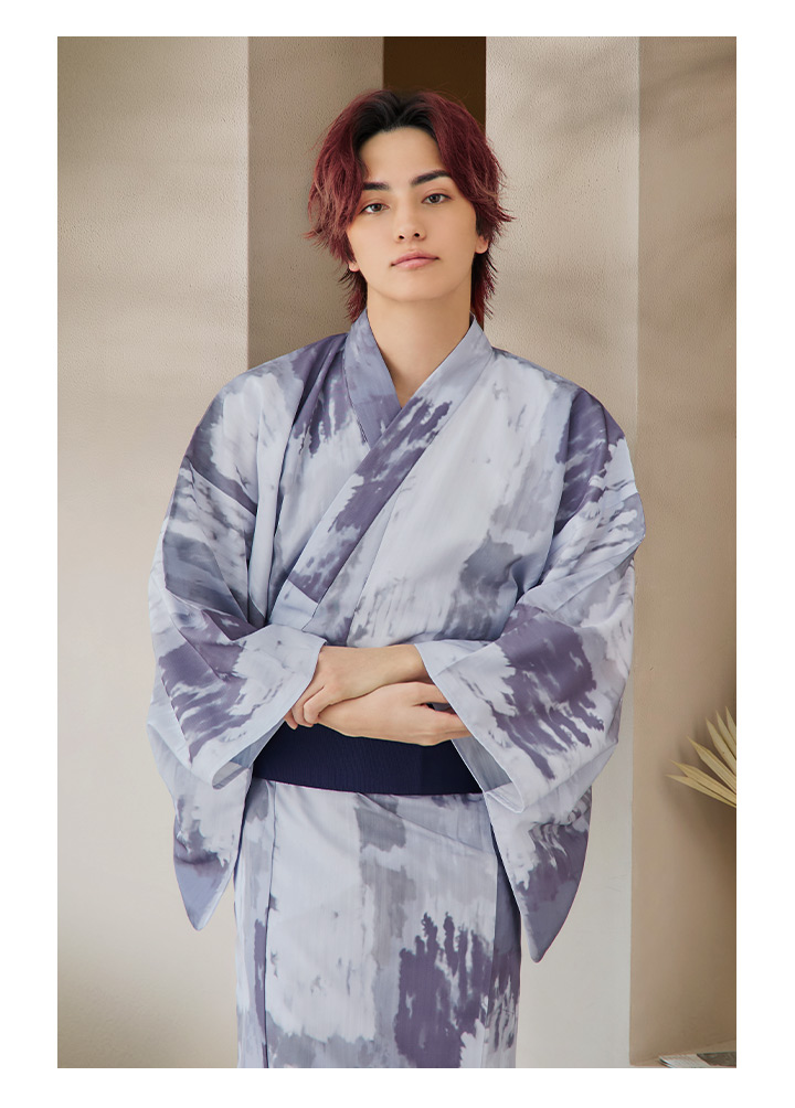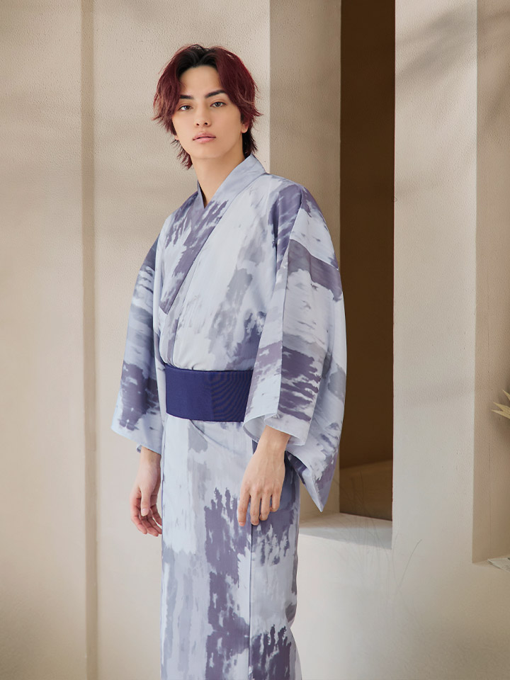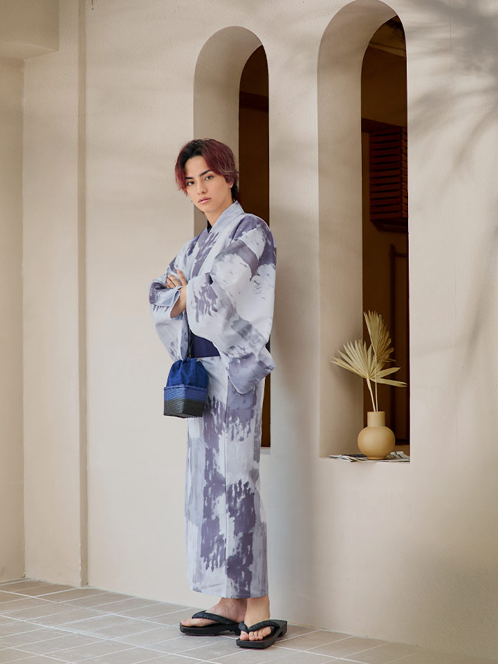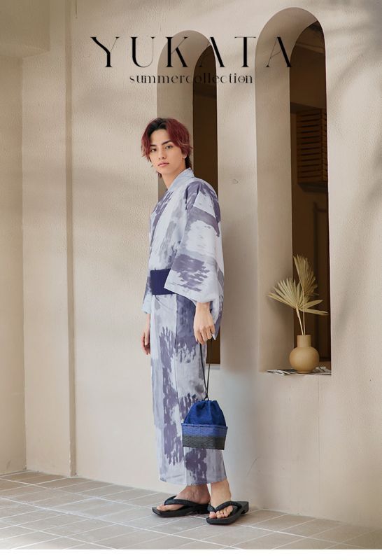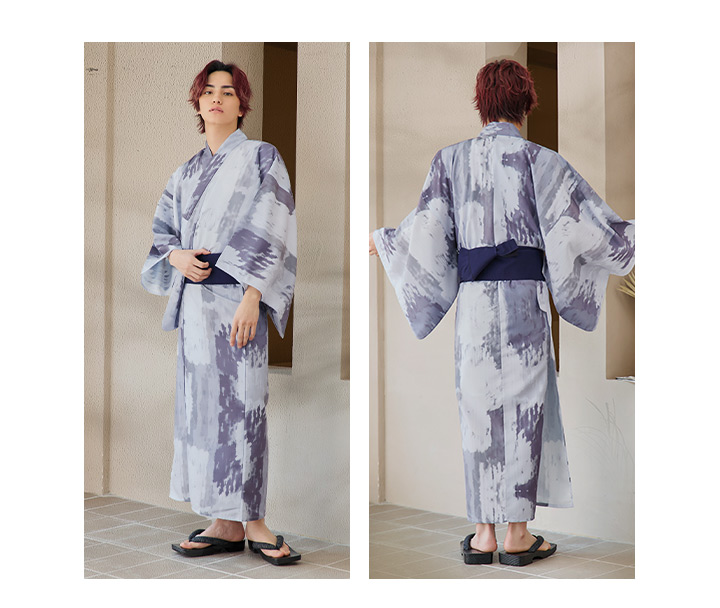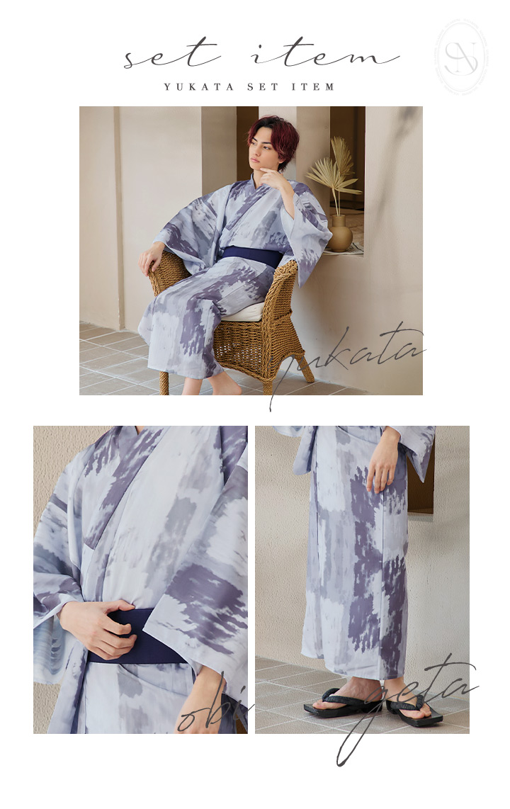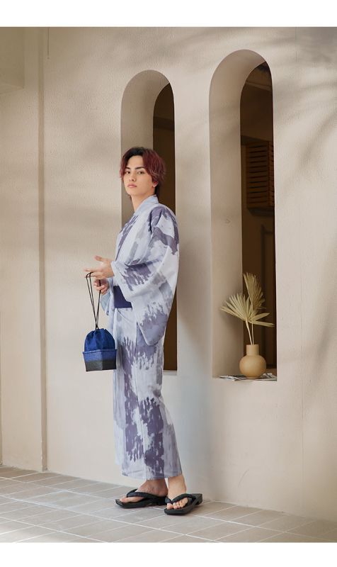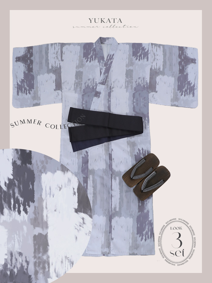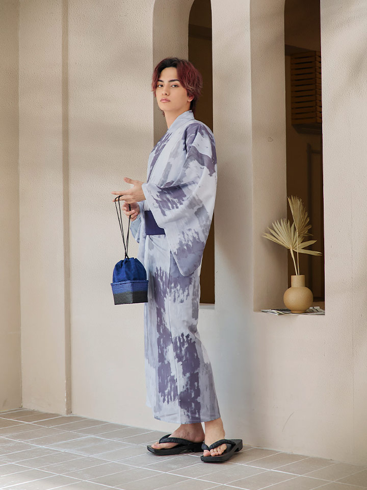 【即日発送!】【メンズ浴衣】くすみブルーグレーモザイク柄浴衣【浴衣・帯・下駄セット】 [YMT] [MSY-9005-nz-GY-L-24BD]
