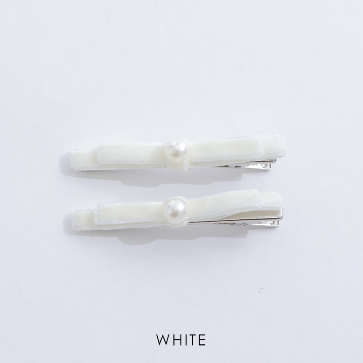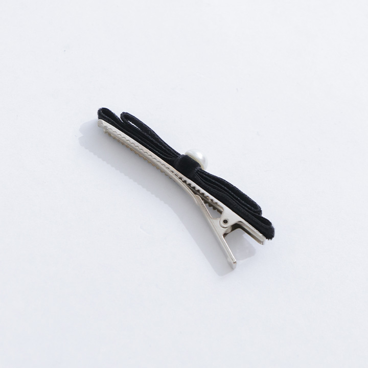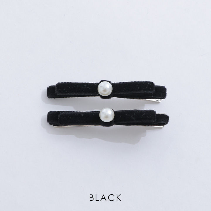 ベロア素材のリボン×パールの組み合わせがトレンド感◎