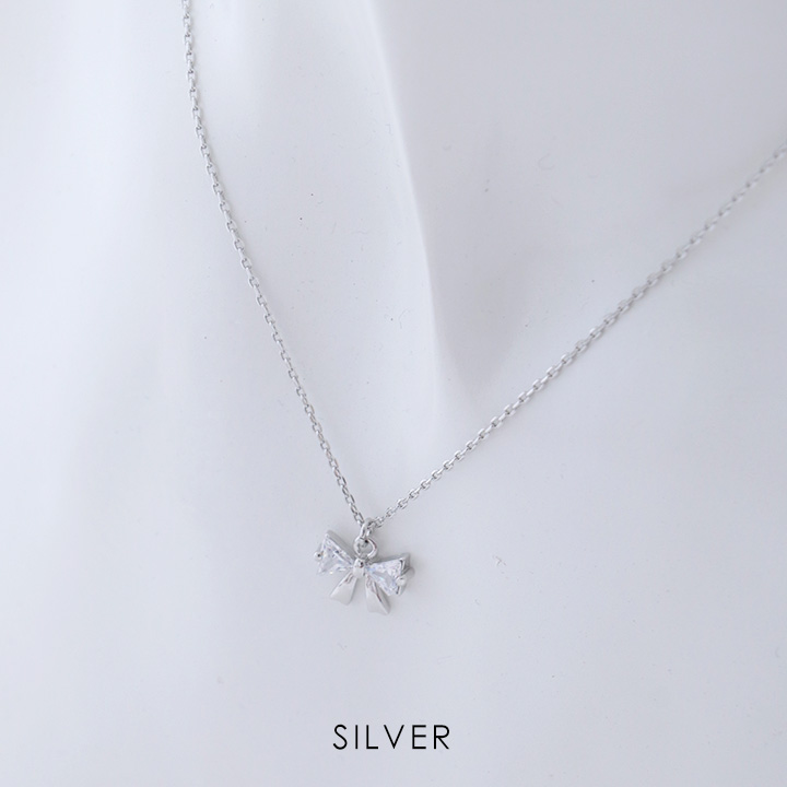 【アクセサリー:ネックレス】クリスタルシルバーリボンネックレス【1カラー】[OF08] [NE311-250221-1]