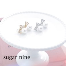 ストーンの輝きが綺麗なリボンパーツにパールがついたデザインがキュート♡