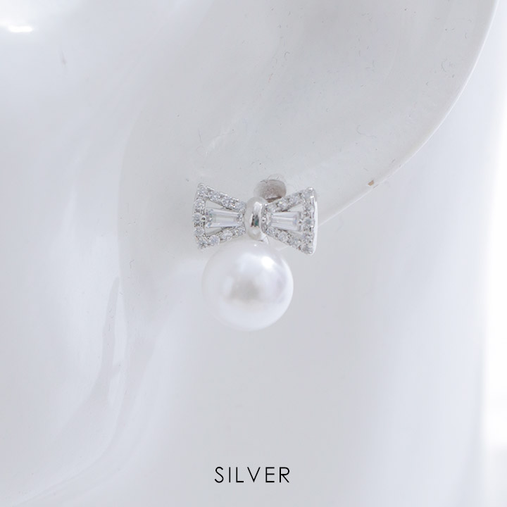 【アクセサリー:ピアス】リボンビジューパールピアス【Fサイズ/2カラー】[OF08] [PI100-250217-1]