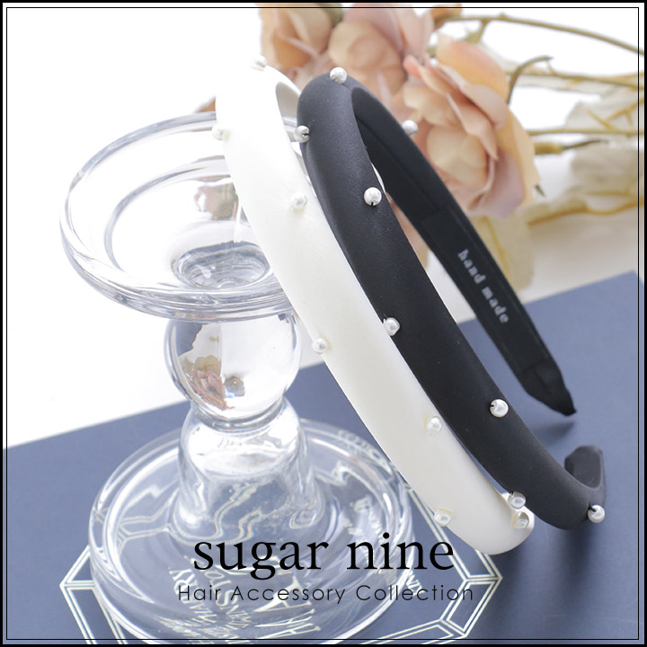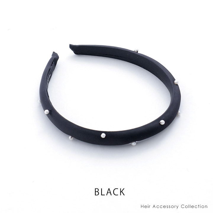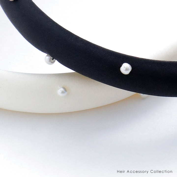 上品な女性らしさ漂うフェイクパール付きサテンカチューシャ