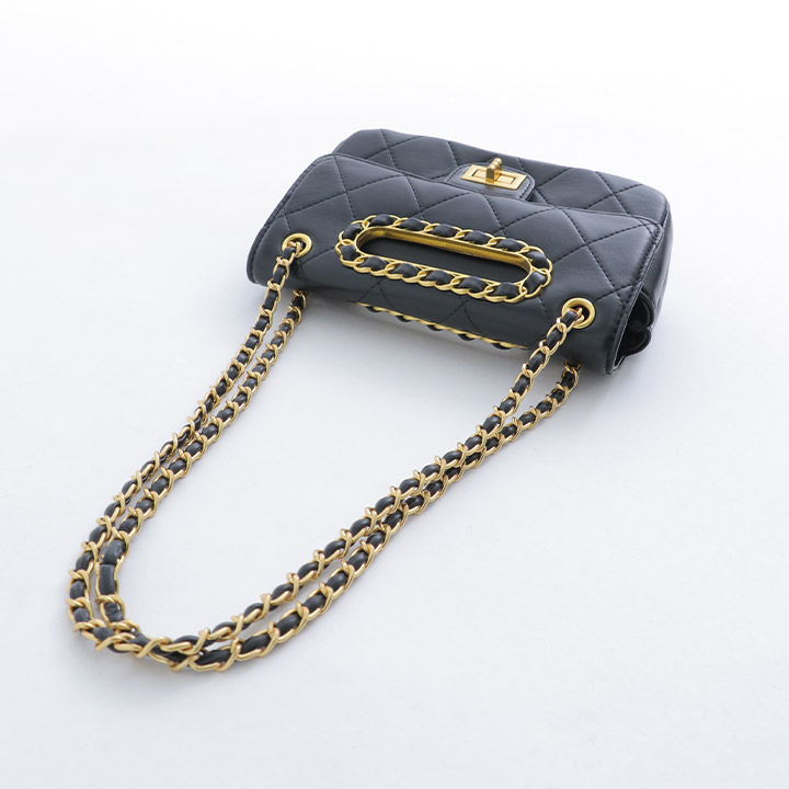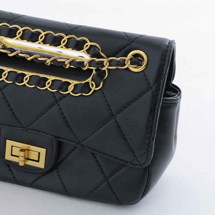 ブラック×ゴールドが目を惹くショルダーバッグ。