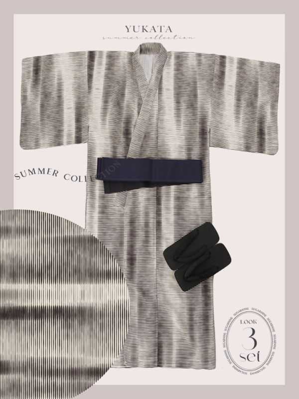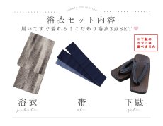 届いてすぐに着れる浴衣+帯+下駄の3点SETアイテムです。