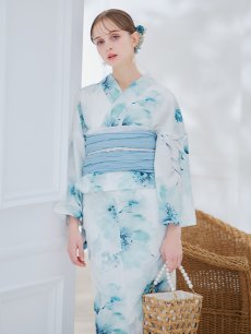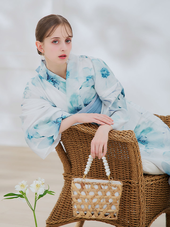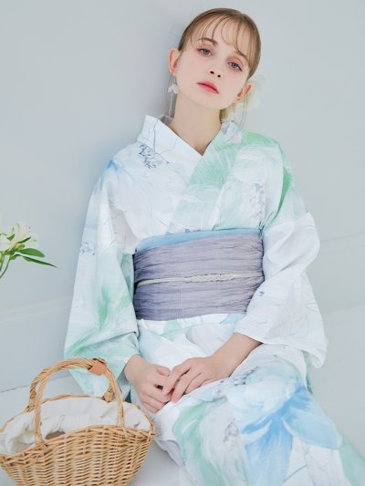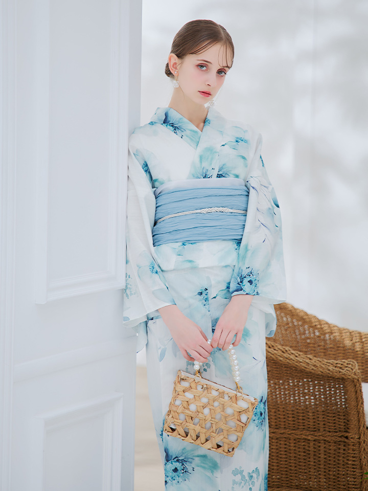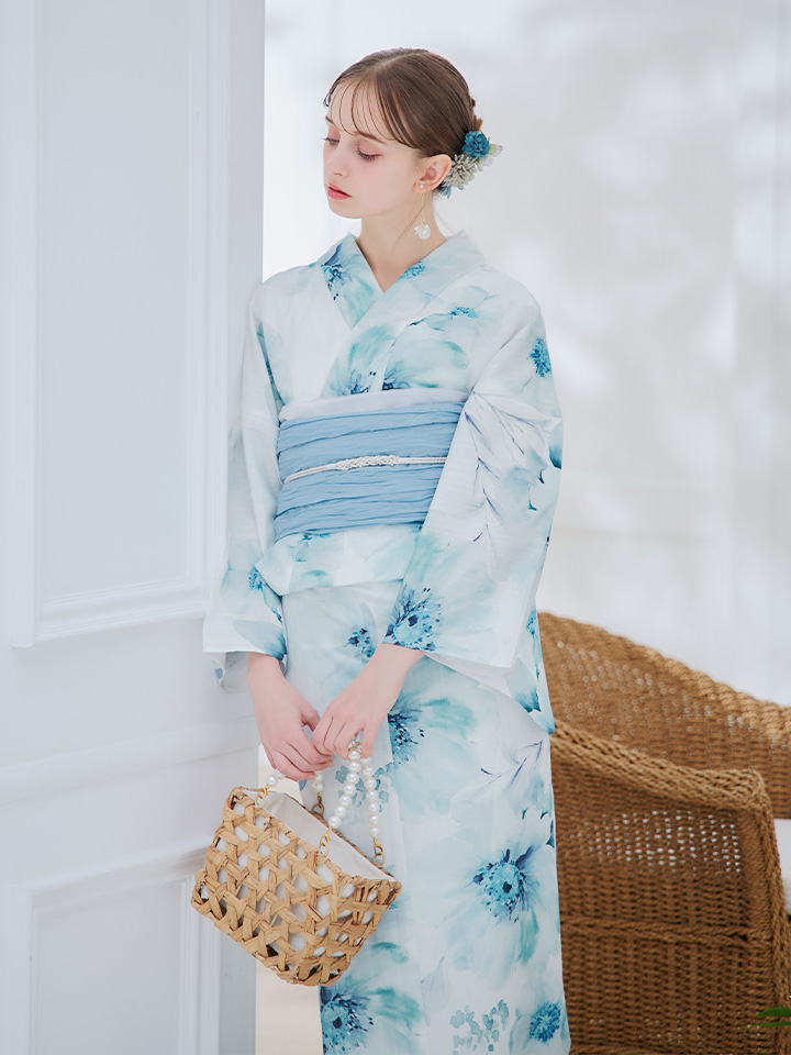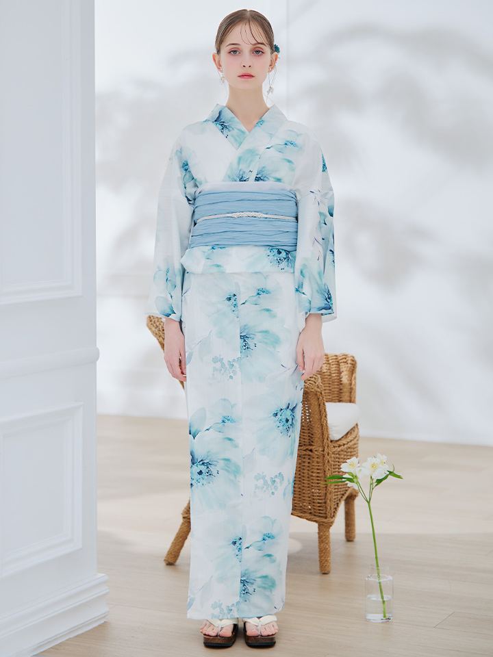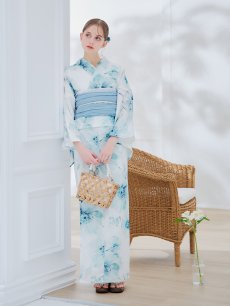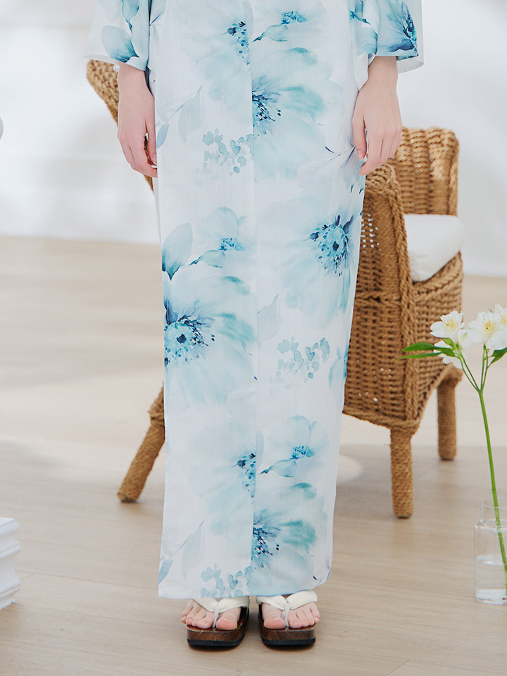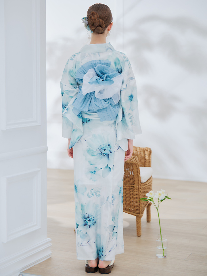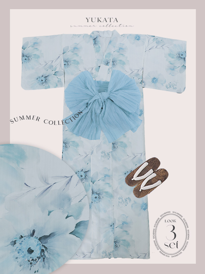 【即日発送】ブルーグレイニュアンスフラワー浴衣 【浴衣3点セット 浴衣/帯/下駄】 [YMT] [Y-9111-nz-dzh-BL-F-25KE]