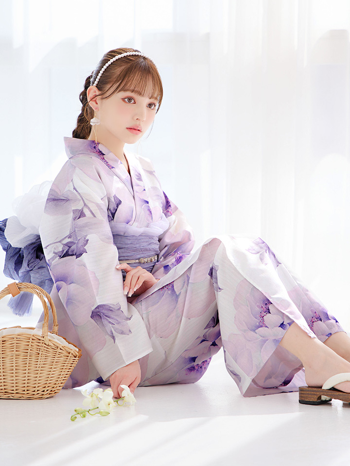 【即日発送】ロイヤルモーブ牡丹浴衣 【浴衣3点セット 浴衣/帯/下駄】 [OF04] [Y-9112-nz-dzh-PL-F-25PO]