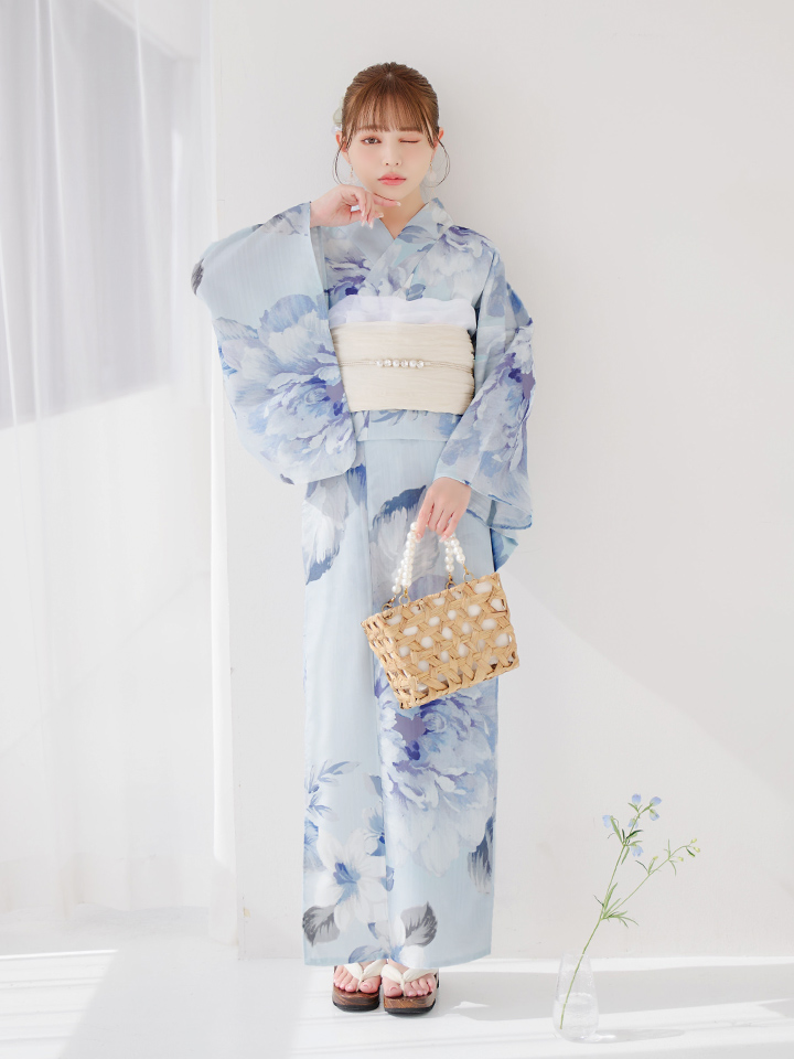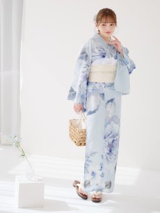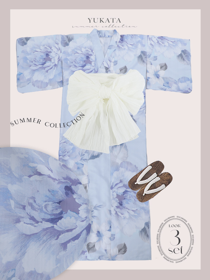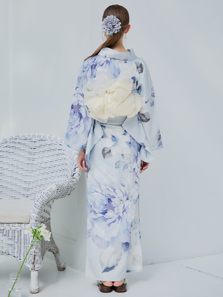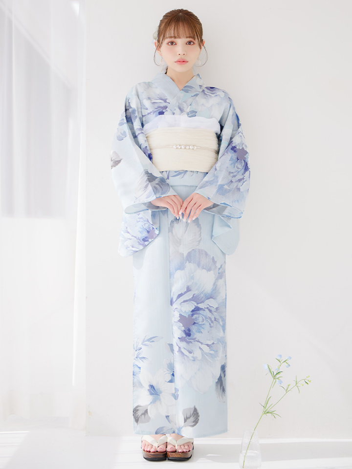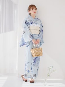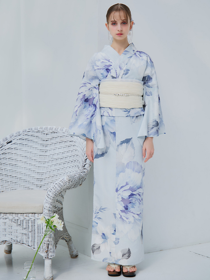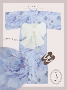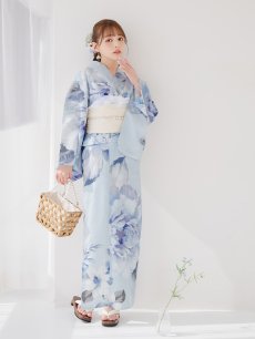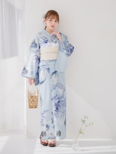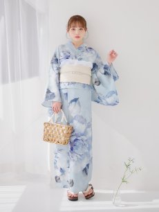 【即日発送】アイスブルー牡丹浴衣 【浴衣3点セット 浴衣/帯/下駄】 [YMT] [Y-9115-nz-dzh-BL-F-25PO]